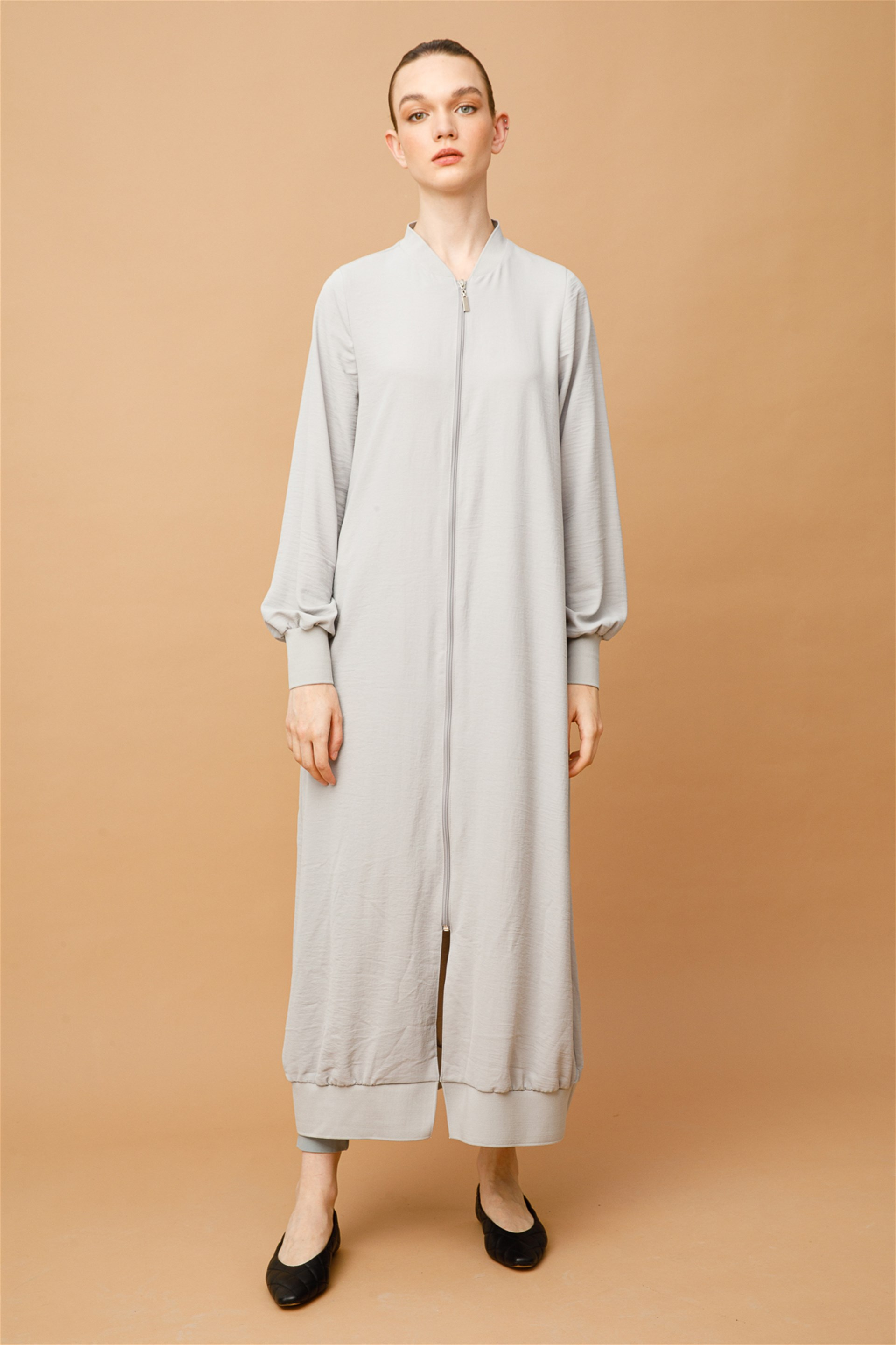 Etek Ucu Kol Ağzı ve Boyun Çevresi Ribanalı Zamansız Spor Kap-Gri (221883M PARDESÜ-18)