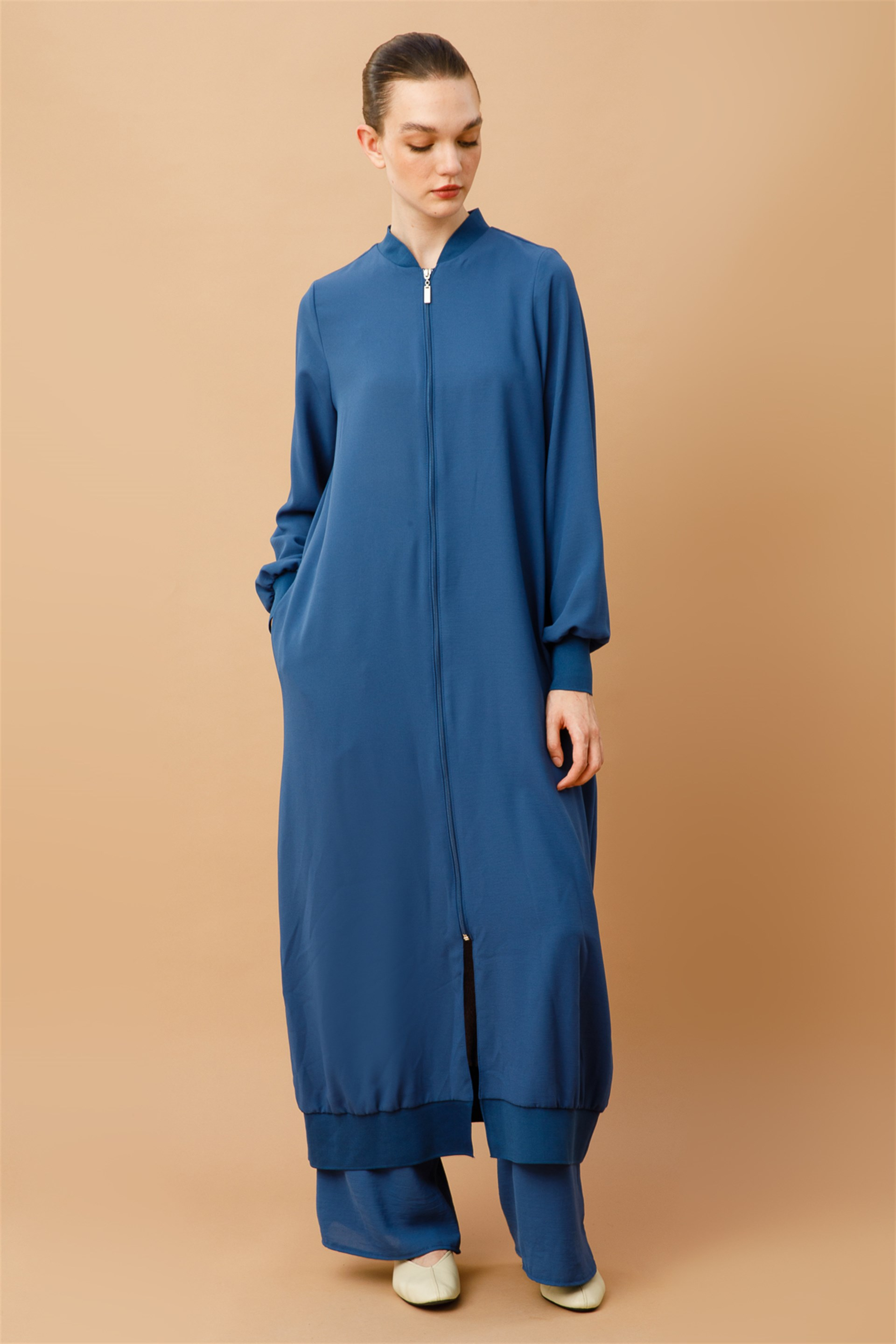 Etek Ucu Kol Ağzı ve Boyun Çevresi Ribanalı Zamansız Spor Kap-İndigo (221883M PARDESÜ-44)