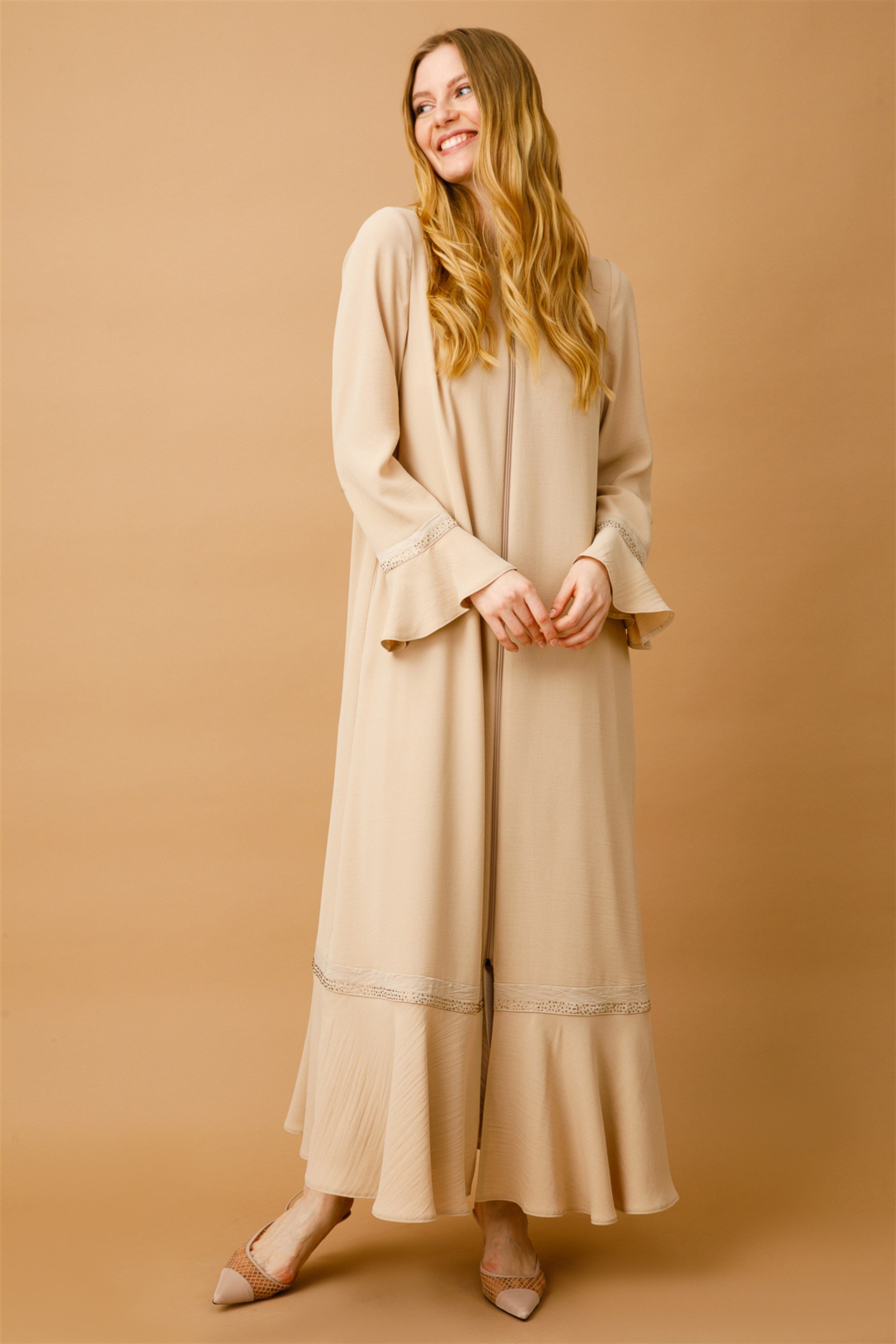 Etek Ucu ve Kolları Volanlı Taş İşlemeli Tam Boy Kap Ferace-Taş (221554M PARDESÜ-12)