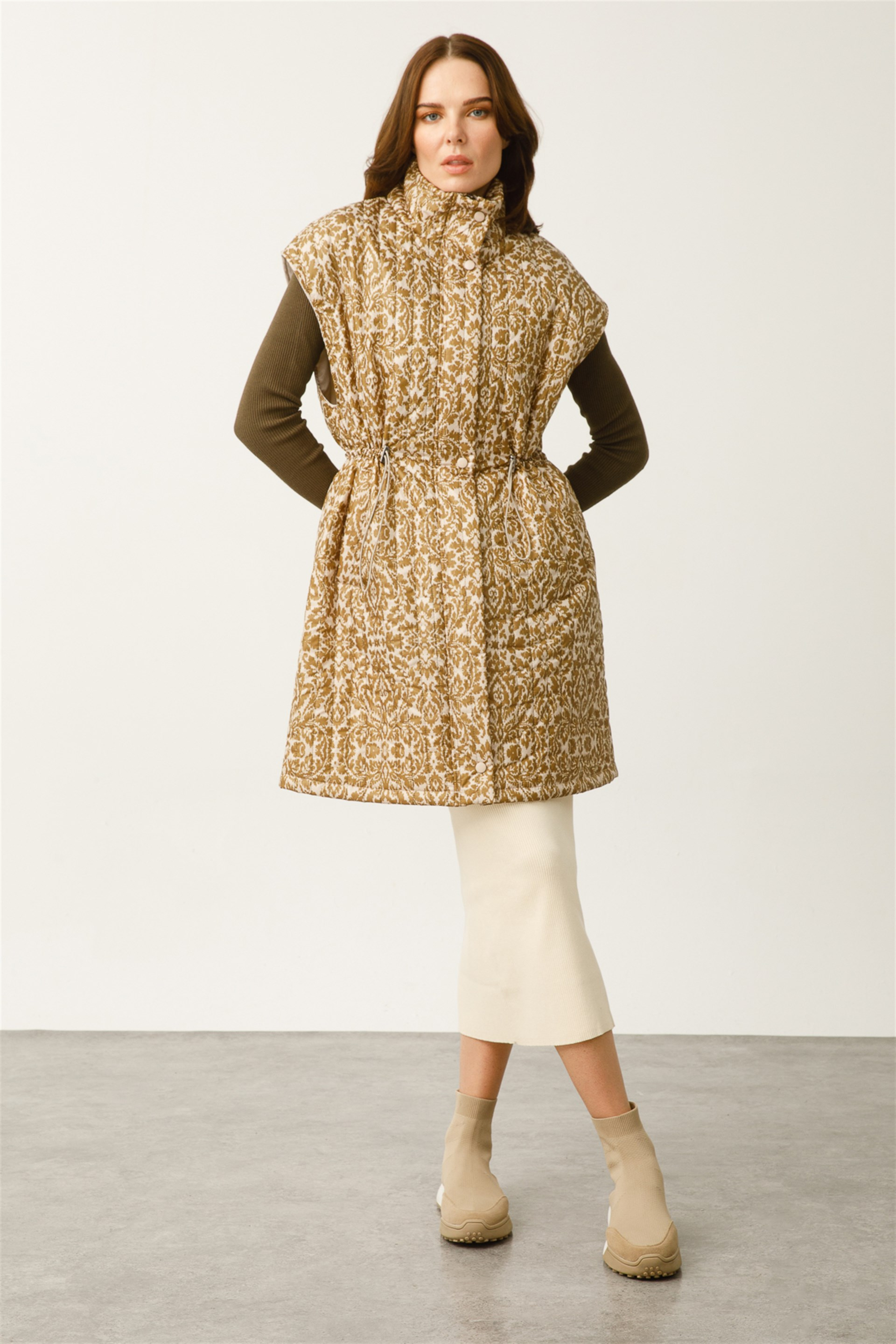 Etnik Desen Kapitone Yelek-Safran (222711M YELEK-33)