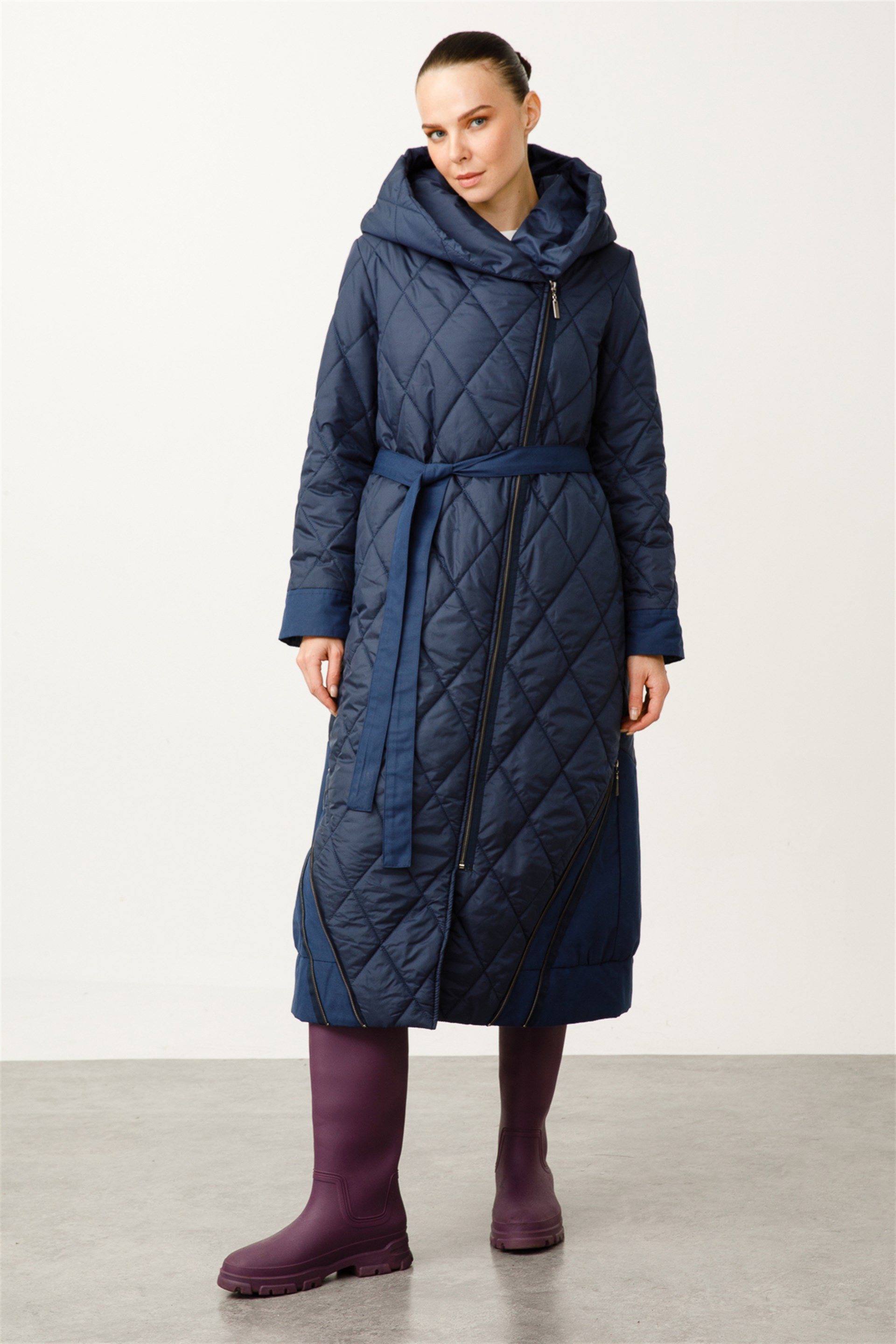 Fermuar ve Helene Garnili Kapitone Modern Manto-Laci (222812M KABAN-04)