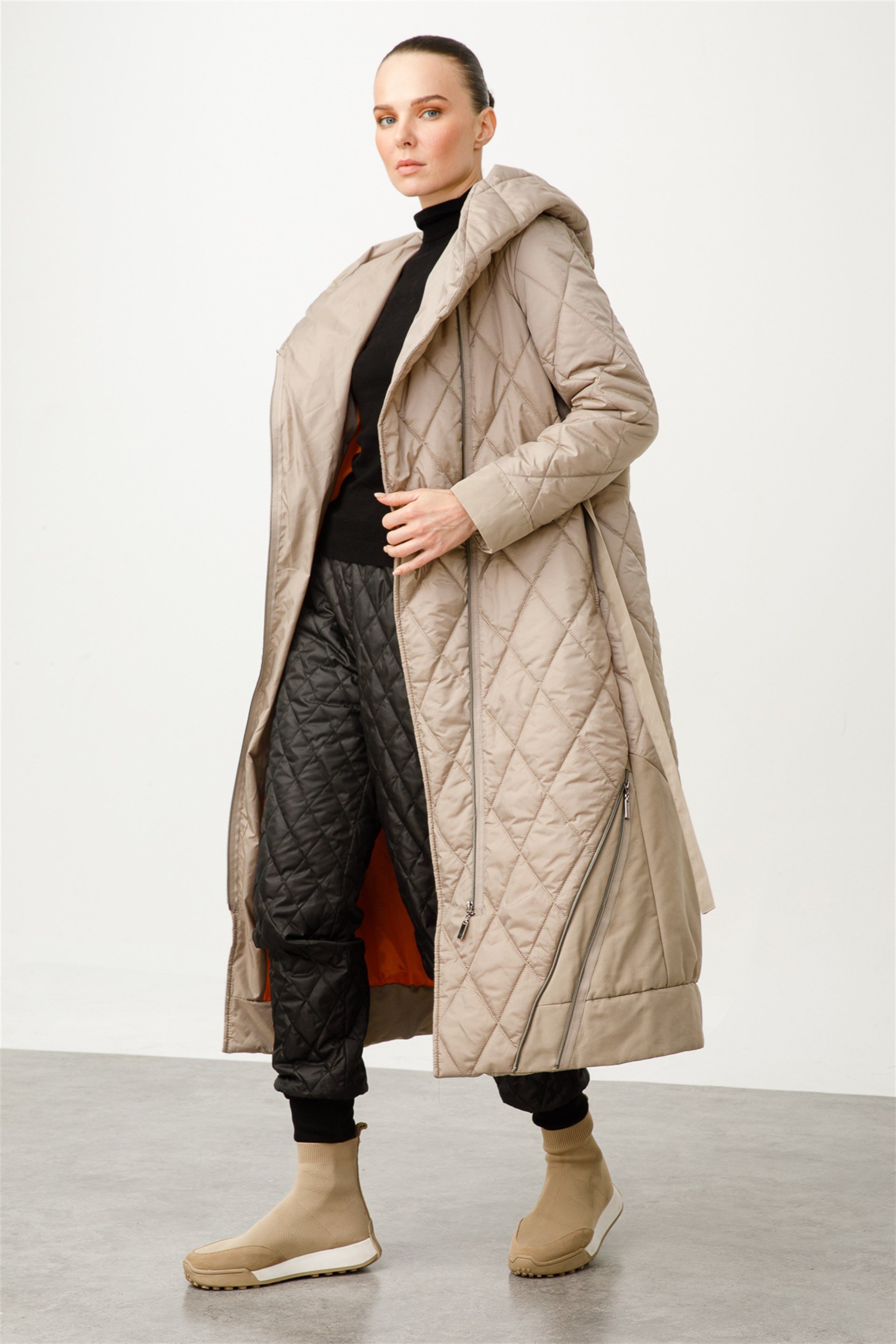 Fermuar ve Helene Garnili Kapitone Modern Manto-Taş (222812M KABAN-12)