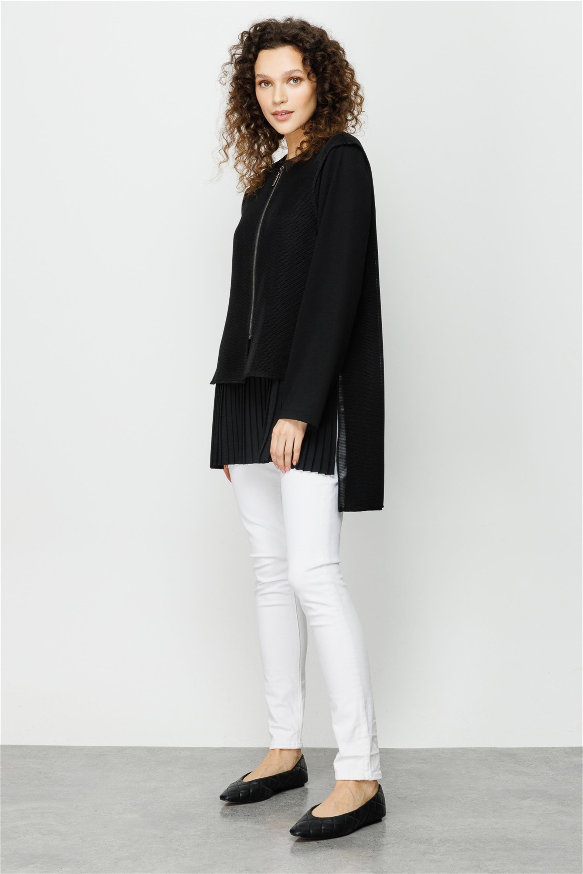 File Yelekli İçi Pilise Tunikli Zor Kırışan Nefes Alan Kumaştan Özel Takım-Siyah