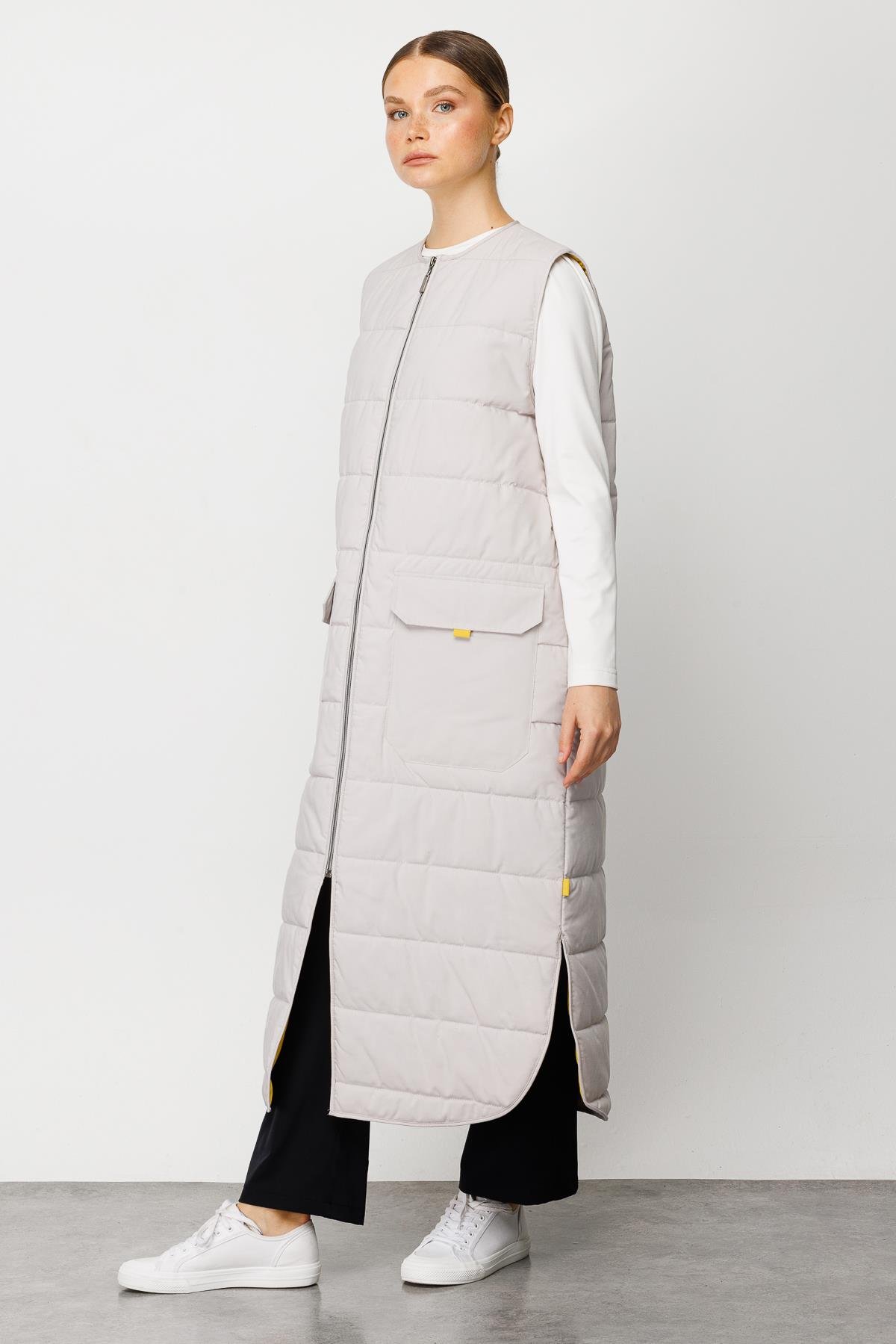 Fiyat/Kalite Ürünü Zamansız Uzun Kapitone Dolgulu Yelek 2024 YAZ-GÜMÜŞ/HARDAL