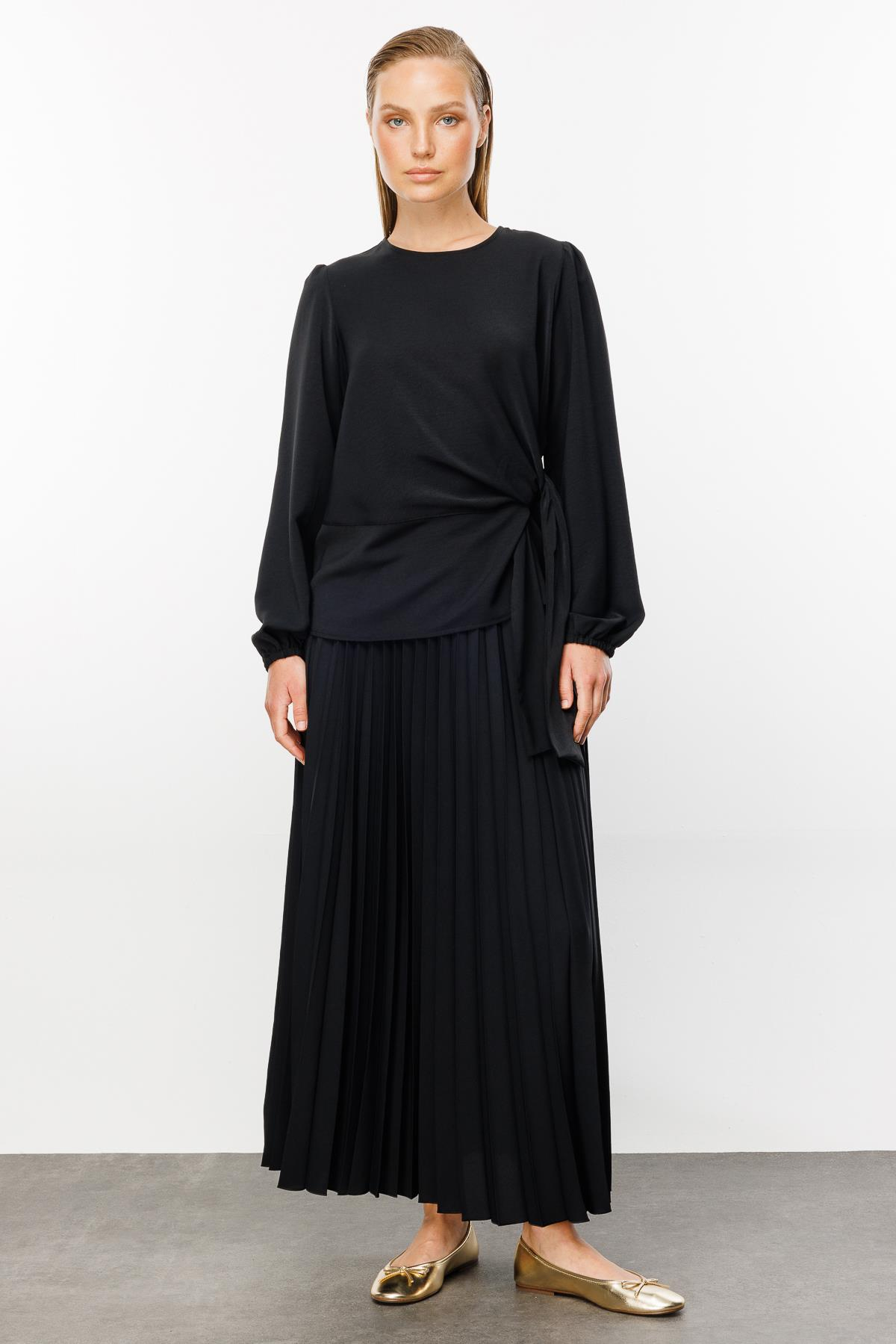 Fiyonk Tunik Pilise Etekli Takım-Siyah