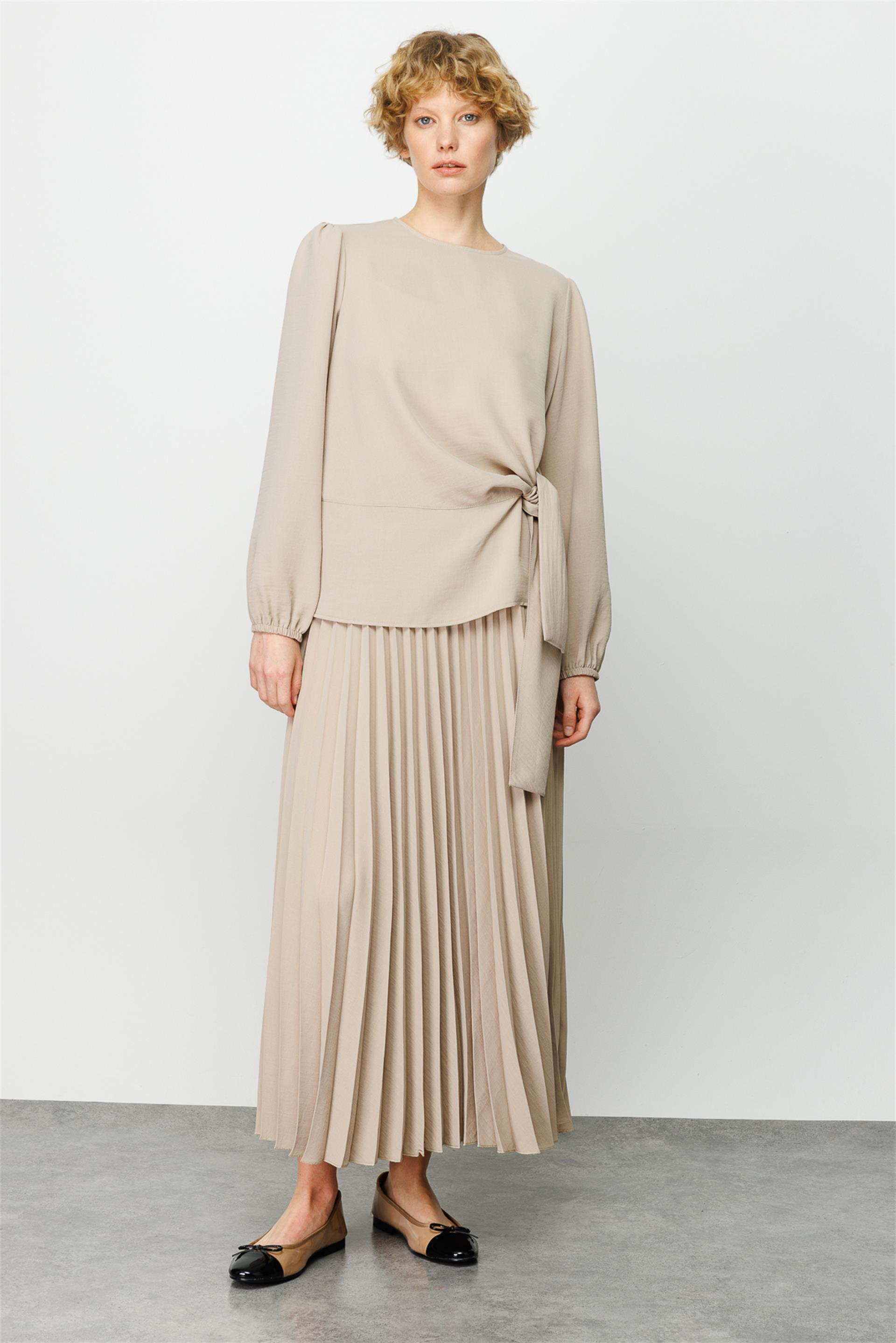 Fiyonk Tunik Pilise Etekli Takım-Taş (231895M FİYONK DETAYLI PİLİSE ETEKLİ TAKIM-12)