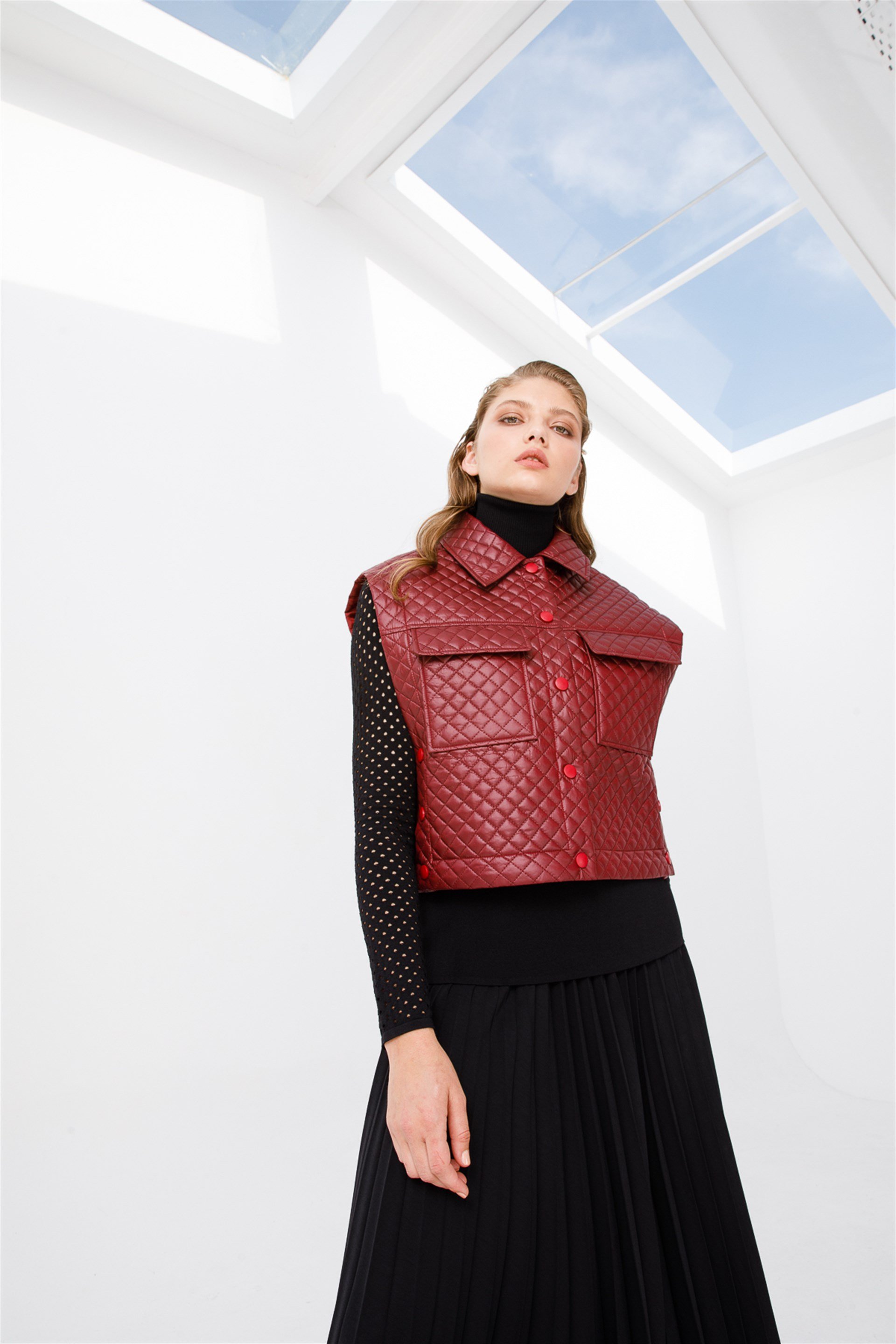 Gömlek Yaka Spor Kısa Ceket-Yelek-Bordo (212707M YELEK-05)