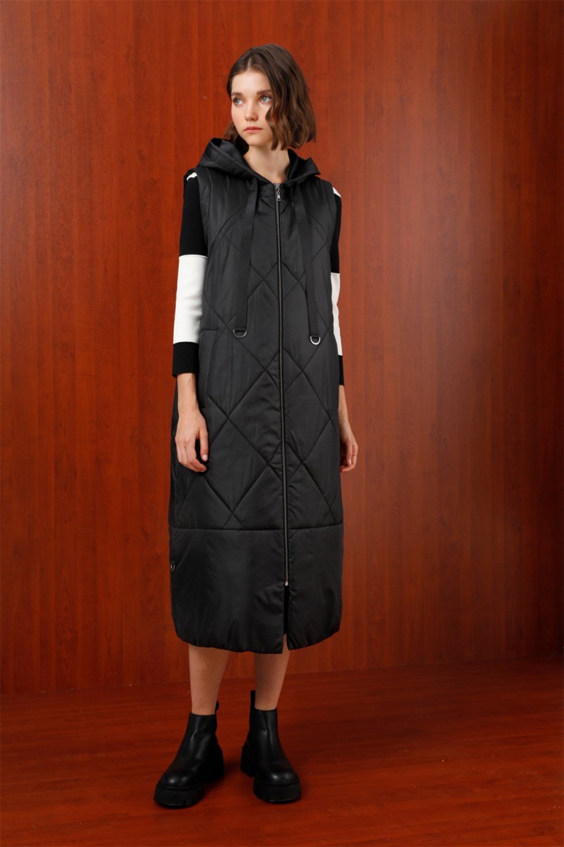 Grogren Detaylı Kapüşonlu Kalın Şişme Yelek-Siyah (212708M YELEK-01)