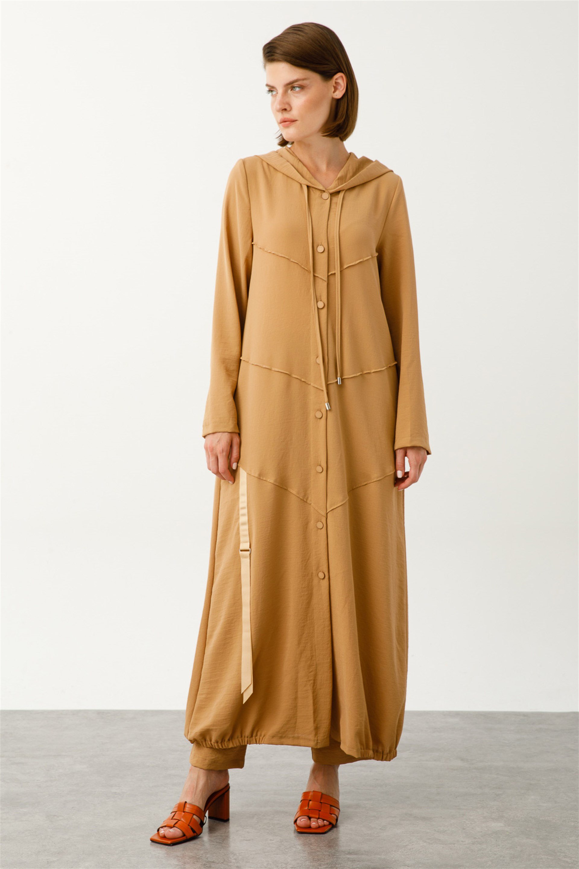 Grogren Detaylı Kendinden Biyeli Kapüşonlu Spor Kap-Camel (221813M PARDESÜ-08)