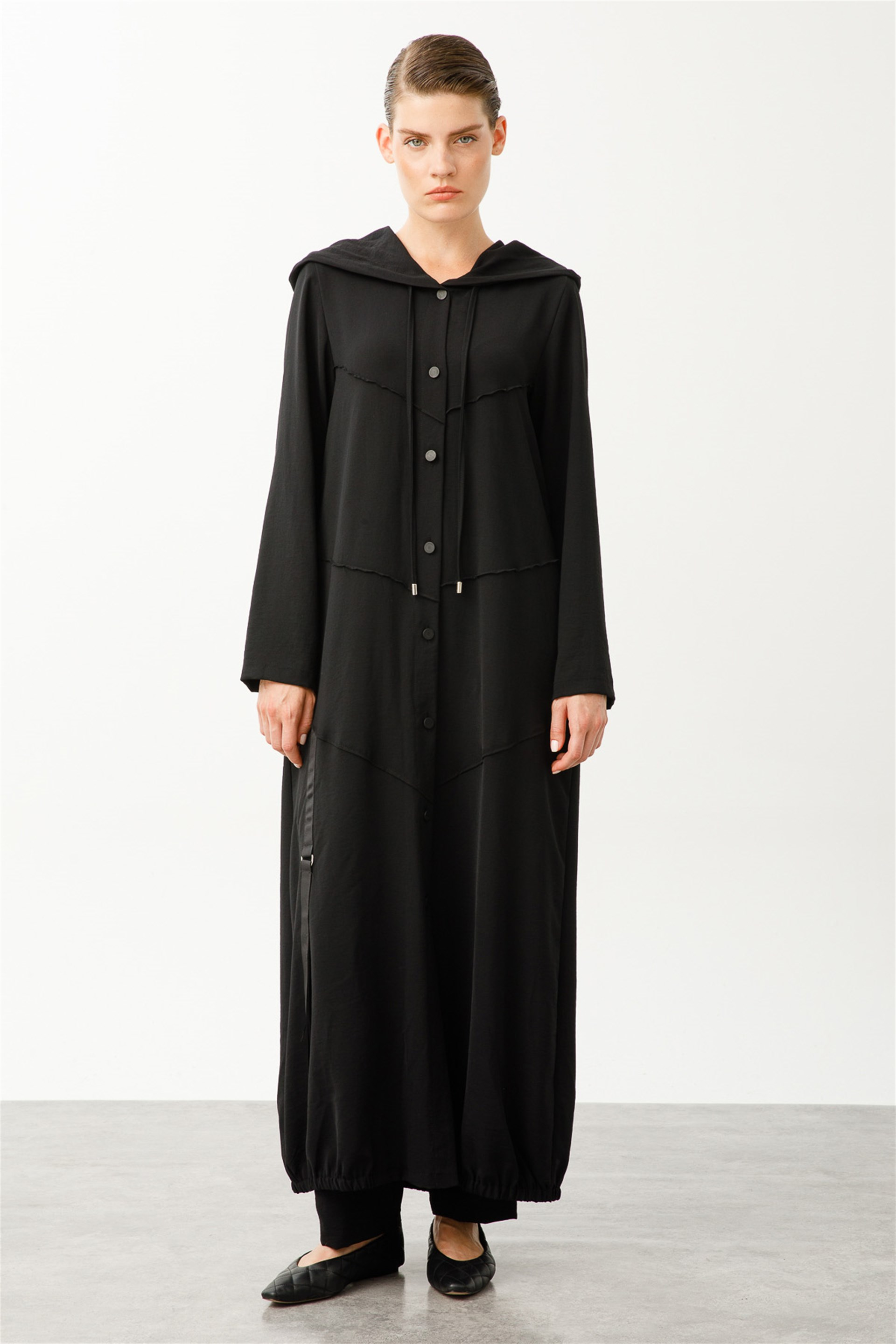 Grogren Detaylı Kendinden Biyeli Kapüşonlu Spor Kap-Siyah (221813M PARDESÜ-01)