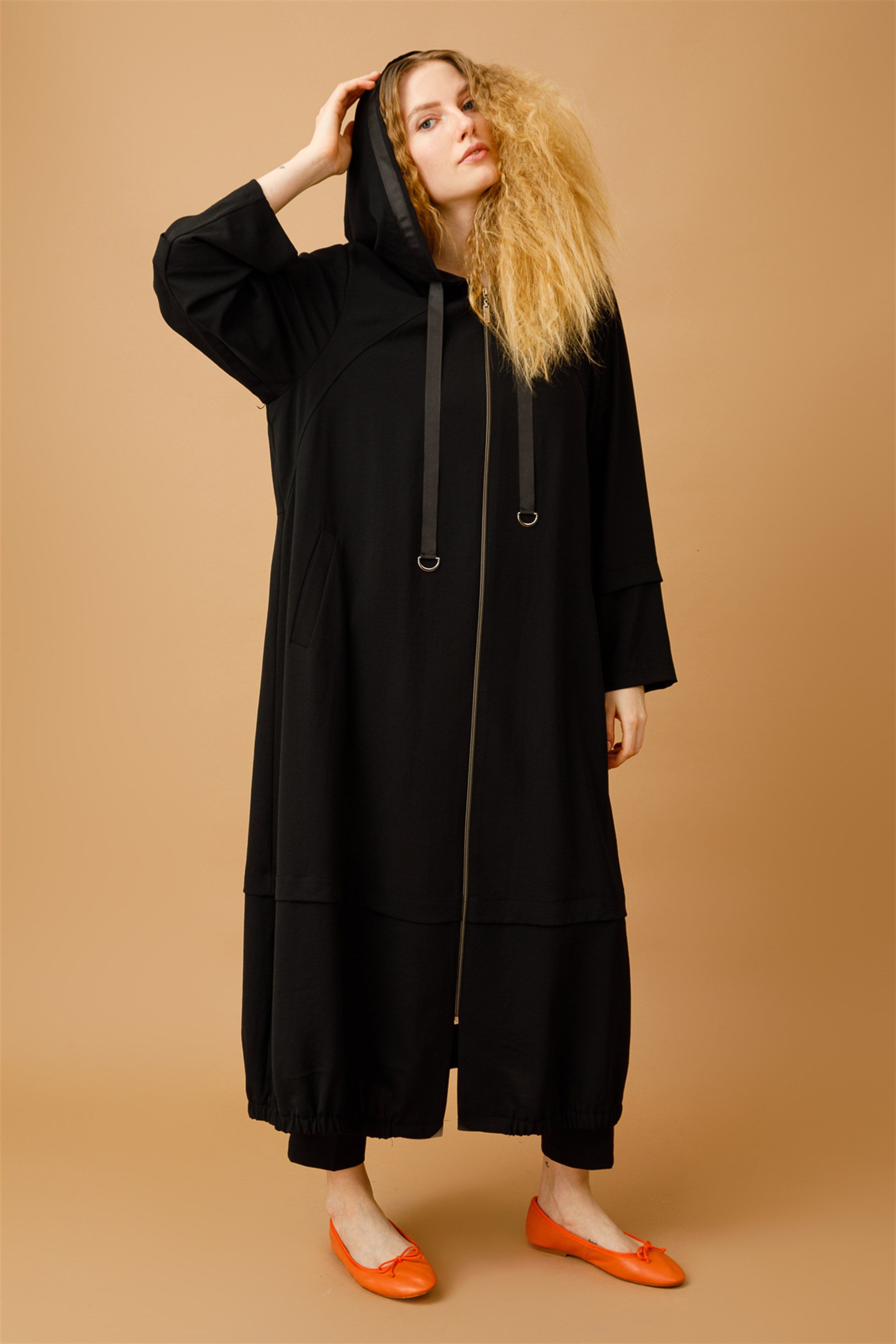 Grogren Garni Detaylı Tam Boy Zor Kırışan Nefes Alan Kumaştan Spor Kap-Siyah (221874M PARDESÜ-01)