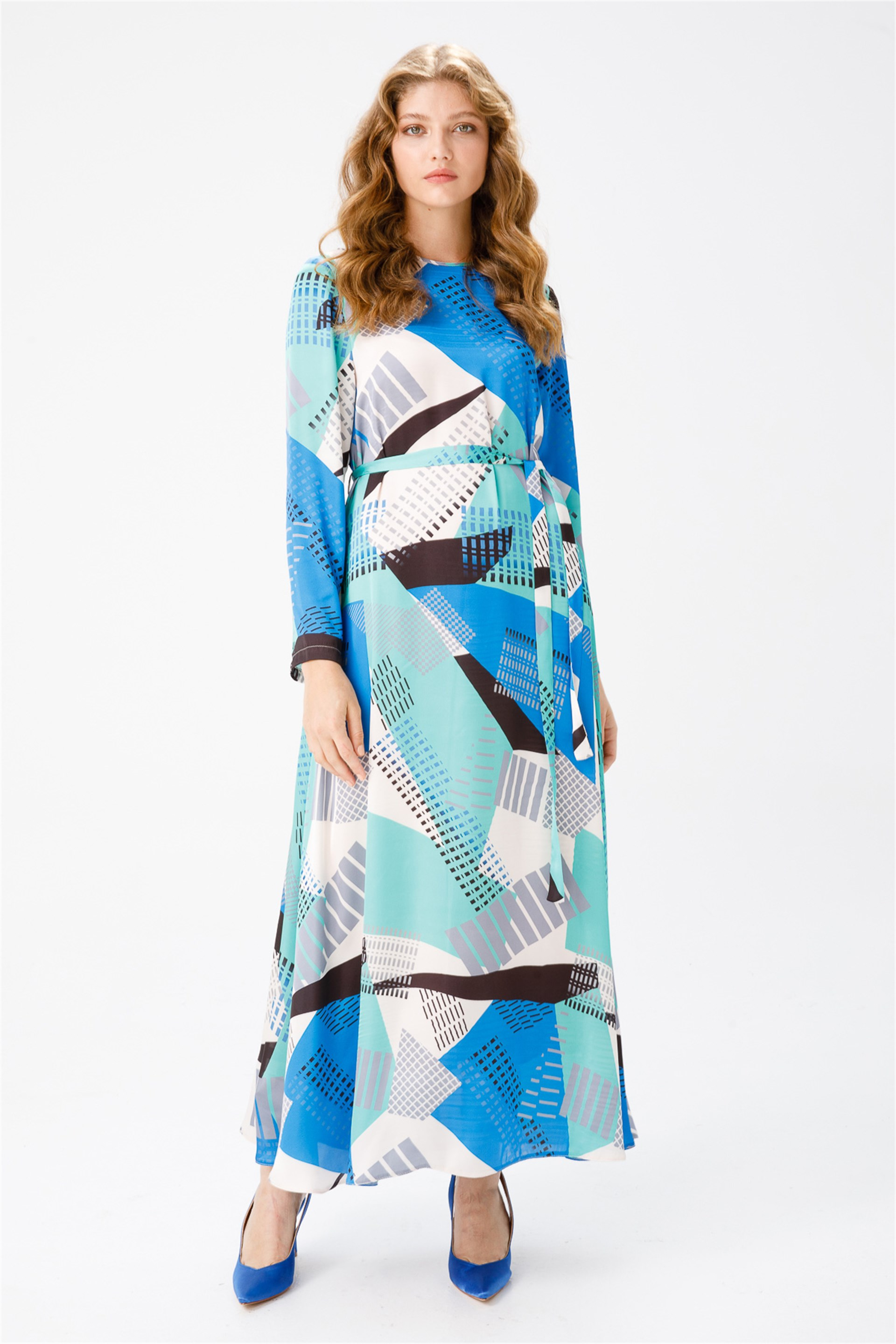 Gündelik ve Özel Günlerde Kullanabileceğiniz Sade ve Şık Tam Boy Elbise-Sax (211347M ELBİSE-07)