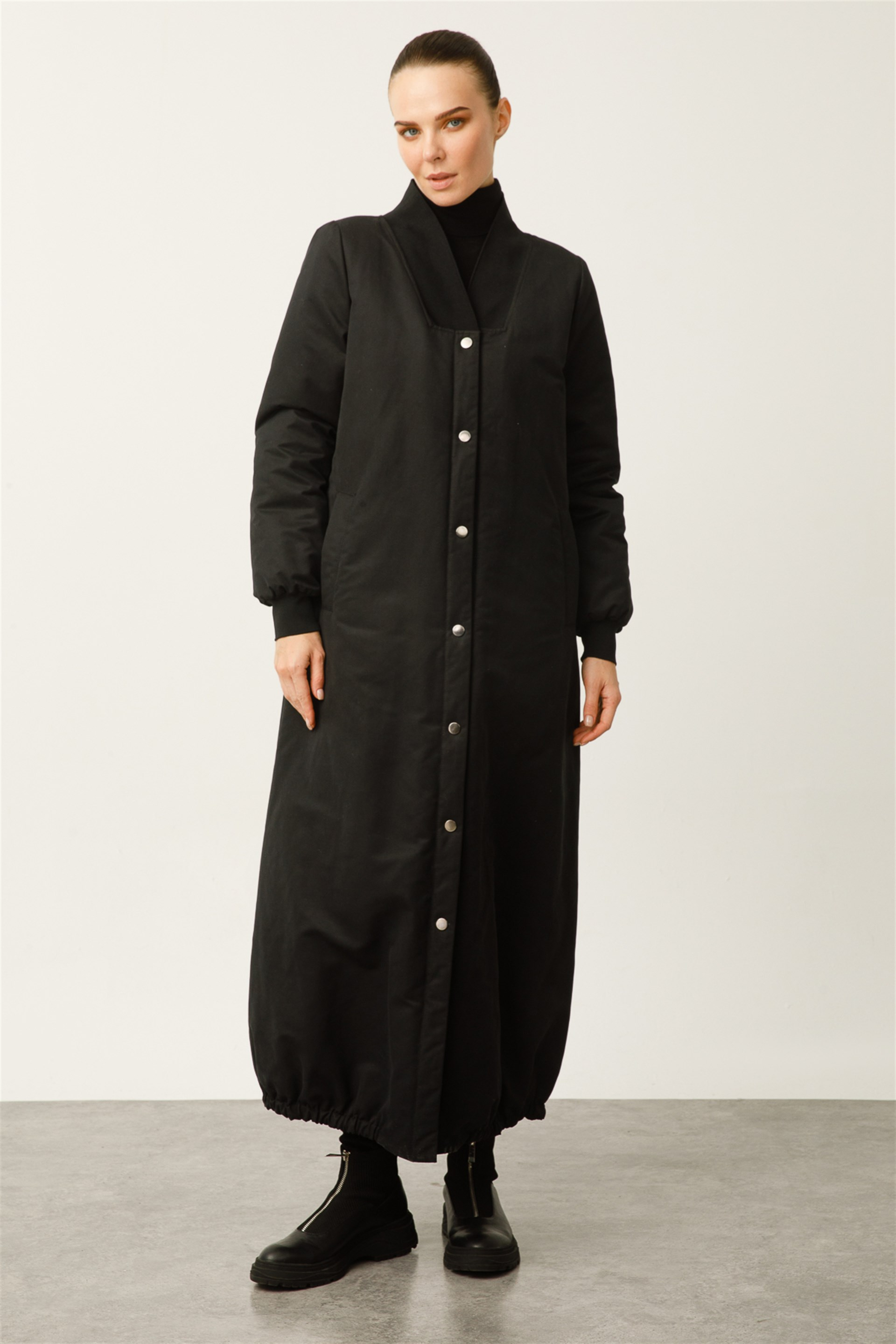 Helene Beden İçi Kapitone Dolgu Ribanalı Tam Boy Spor Manto-Siyah (222801M KABAN-01)