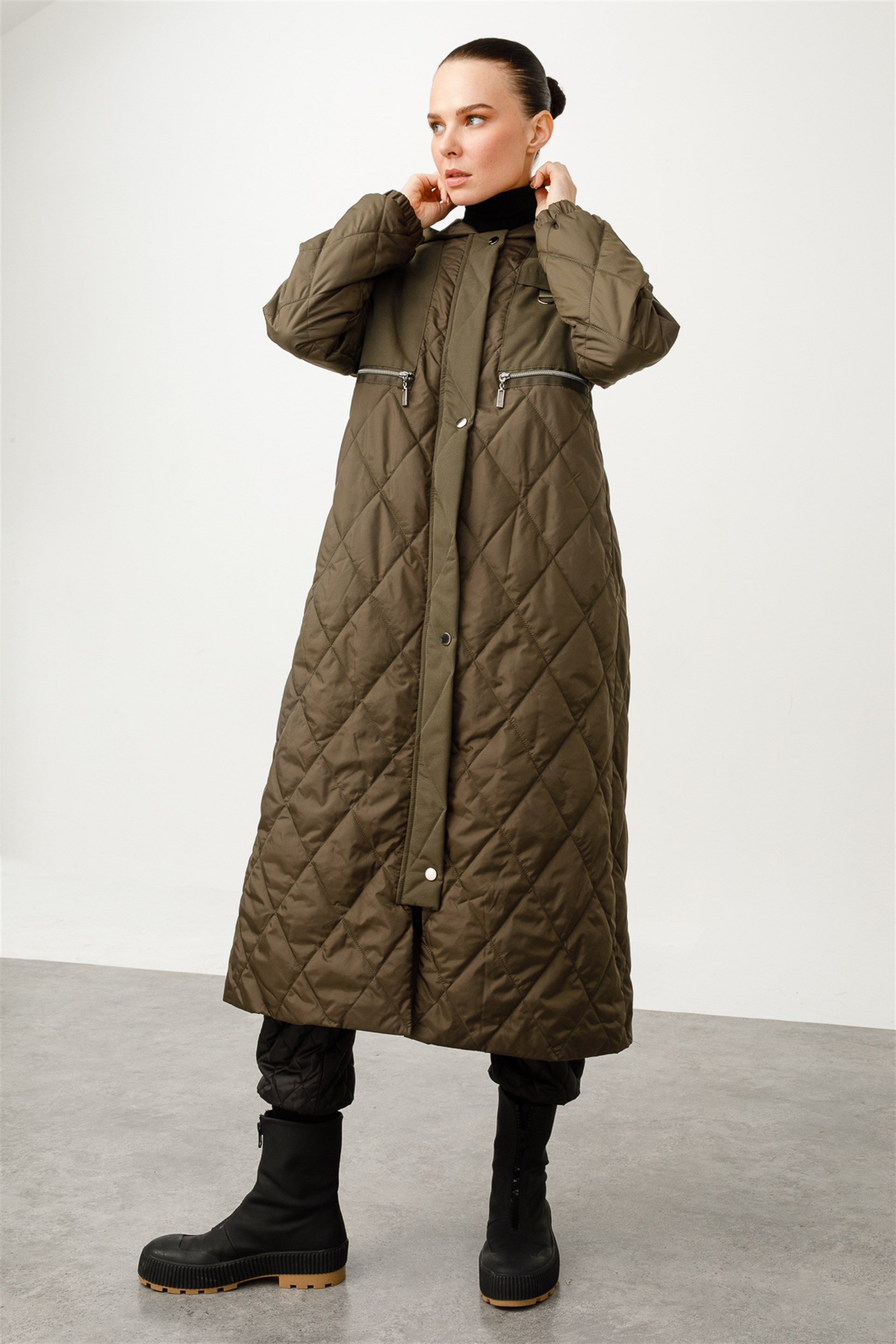 Helene Rüzgarlığı Fermuar Garnili Kapitone Spor Manto-Haki (222561M KABAN-20)