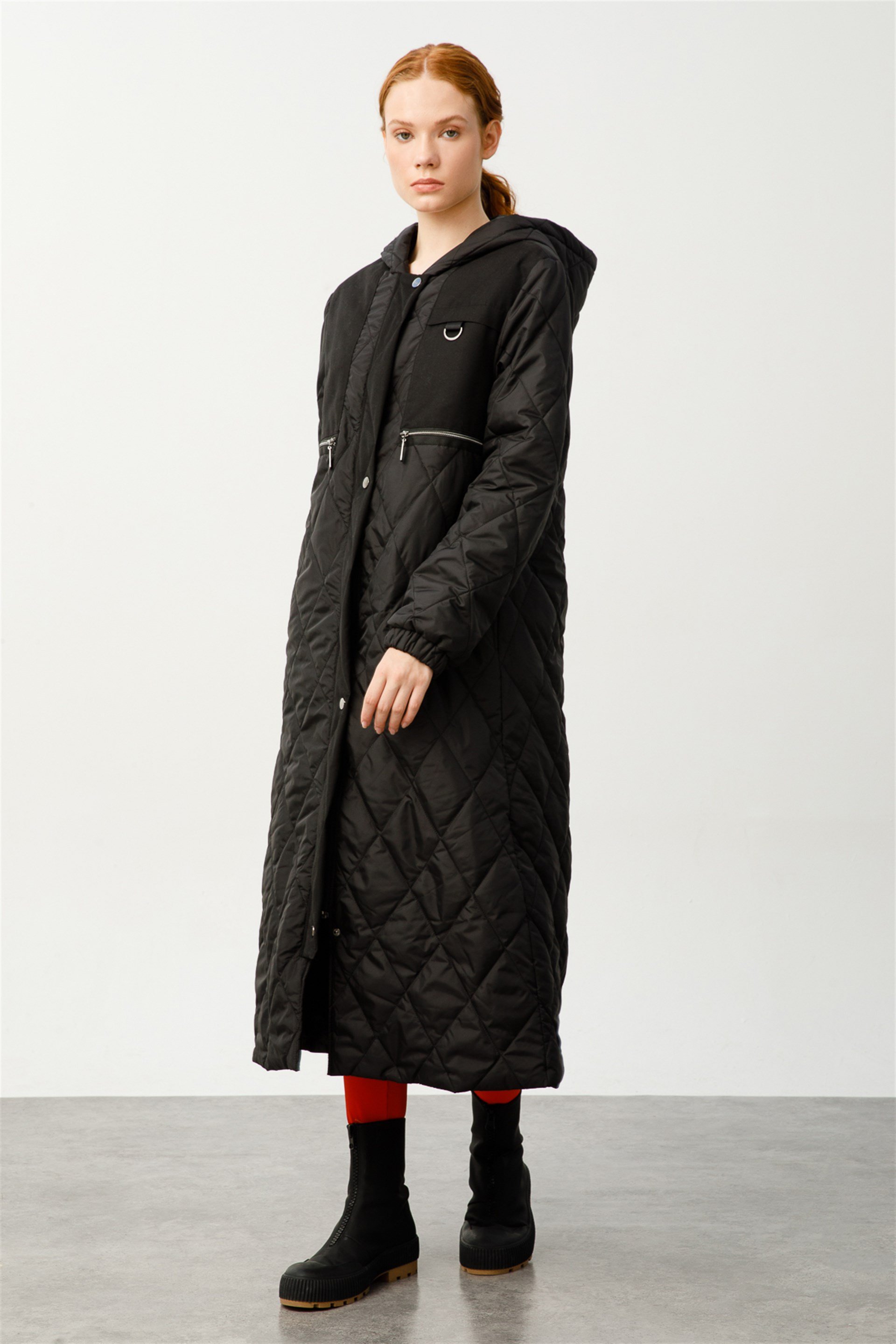 Helene Rüzgarlığı Fermuar Garnili Kapitone Spor Manto-Siyah (222561M KABAN-01)