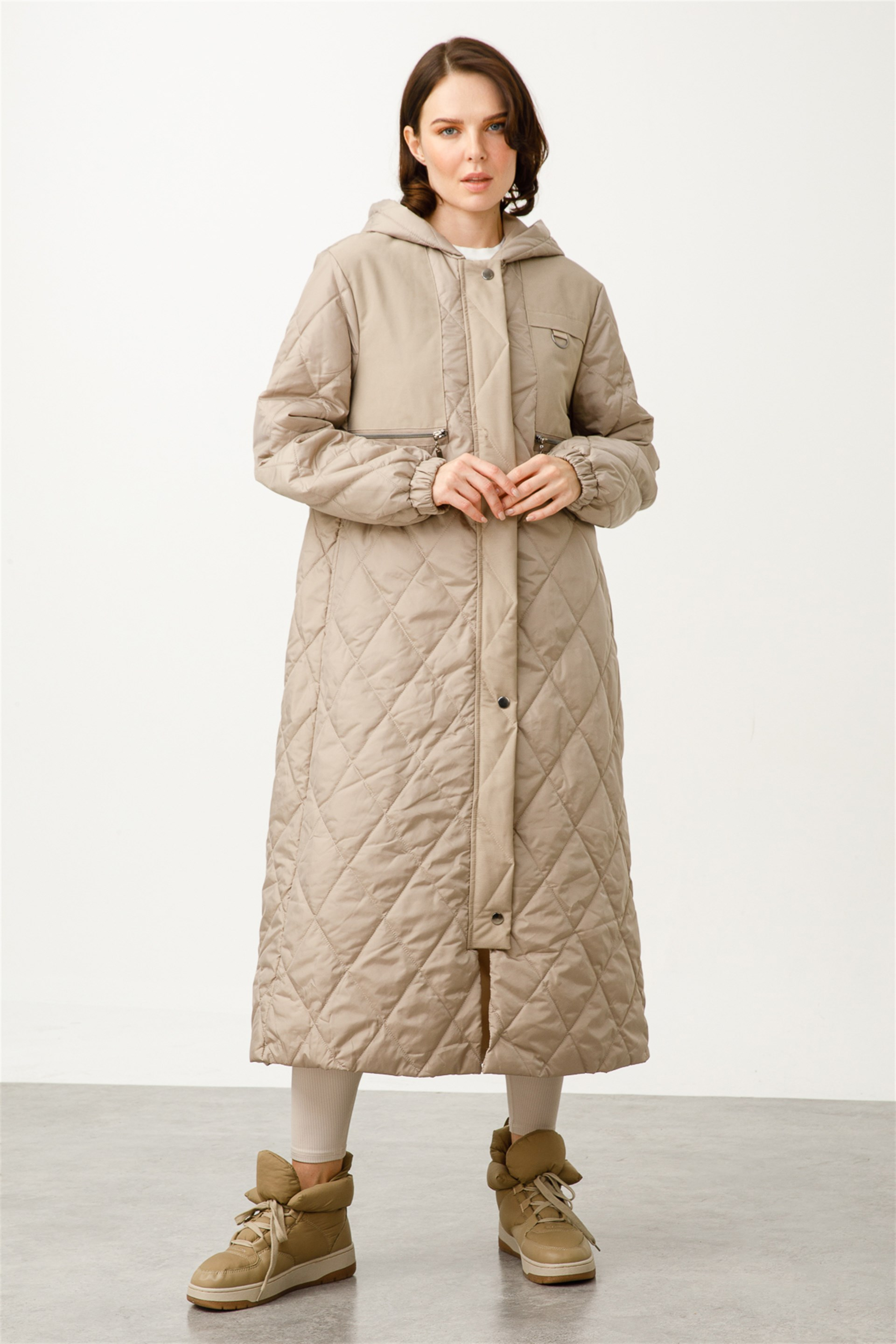 Helene Rüzgarlığı Fermuar Garnili Kapitone Spor Manto-Taş (222561M KABAN-12)