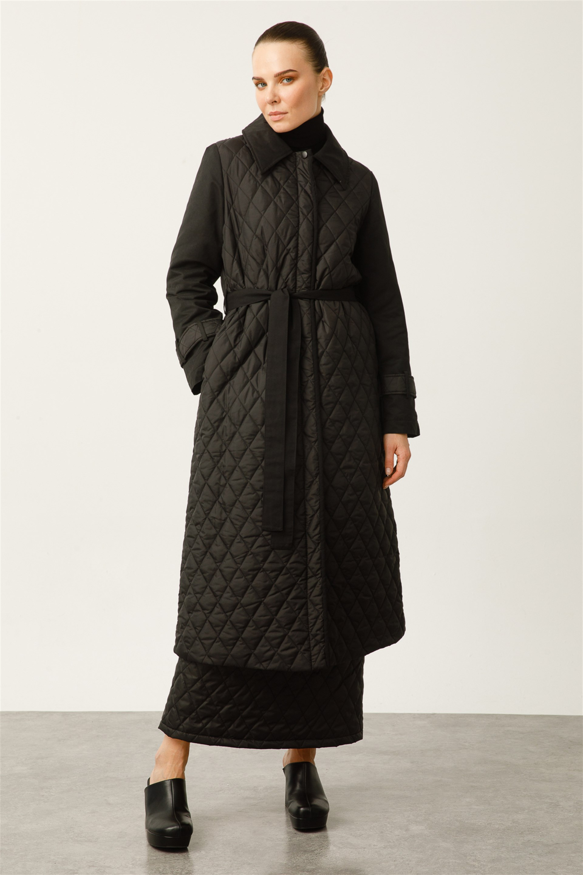 Helene Rüzgarlık Garnili Sade Zamansız Baharlık Kapitone Manto-Siyah (222514M KABAN-01)