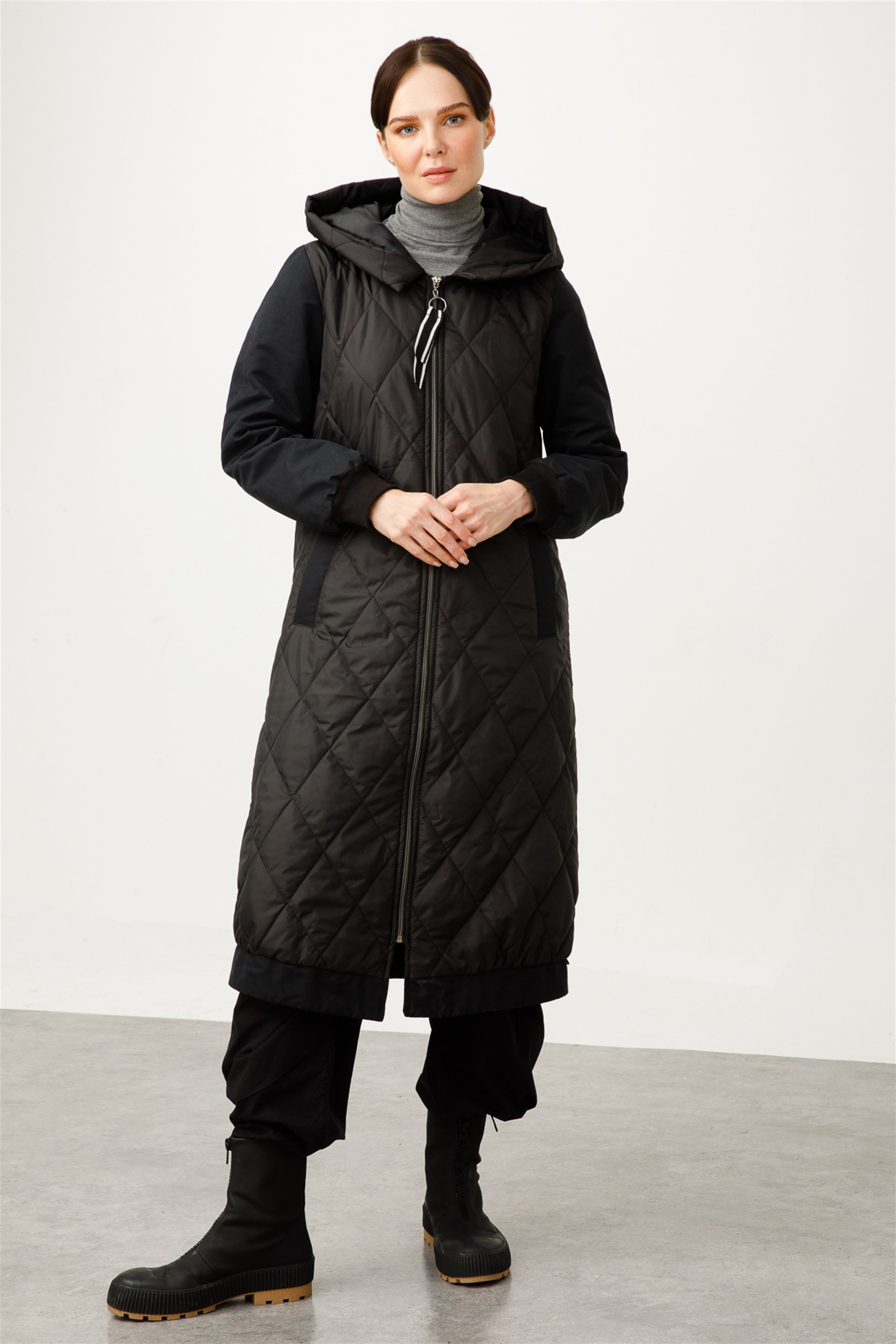 Helene Tüm Beden Kapitone Dolgulu Spor Manto Kaban-Siyah (222528M KABAN-01)