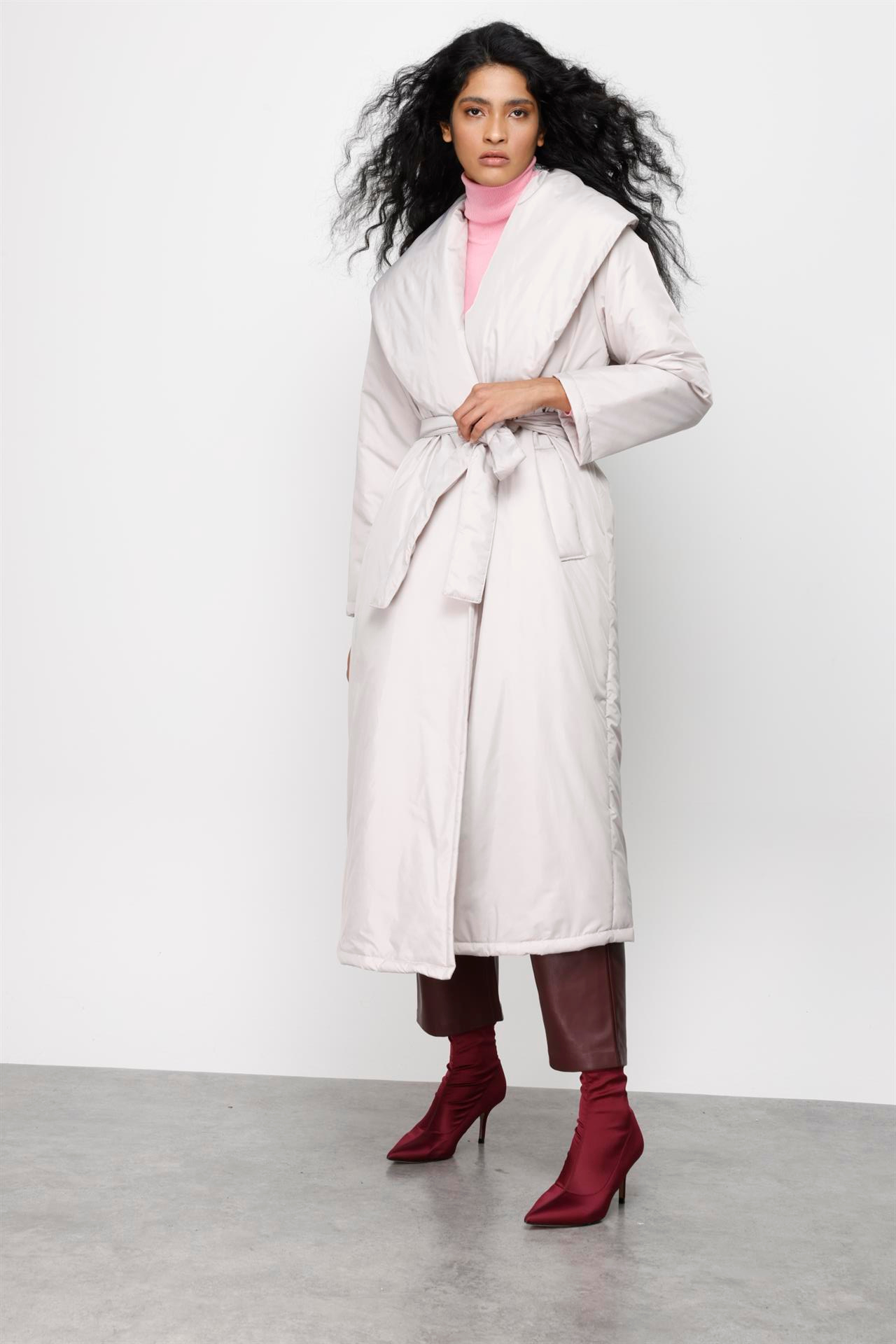 Hergün ve Herzaman Kullanıma Uygun Kalın Elyaf Dolgulu Kemer Kapamalı Manto-Gümüş