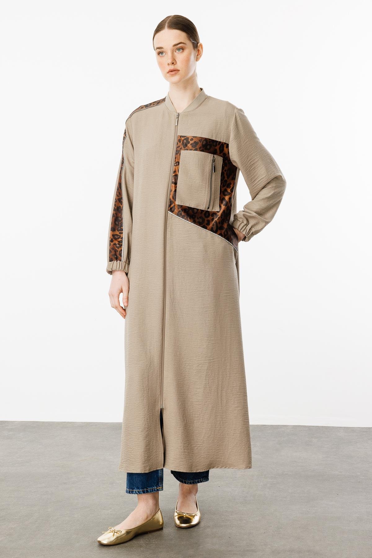 Ht Leopar İnce İpekçe Dökümlü Spor Zamansız Kap Ferace-Vizon (251553M KAP-16)