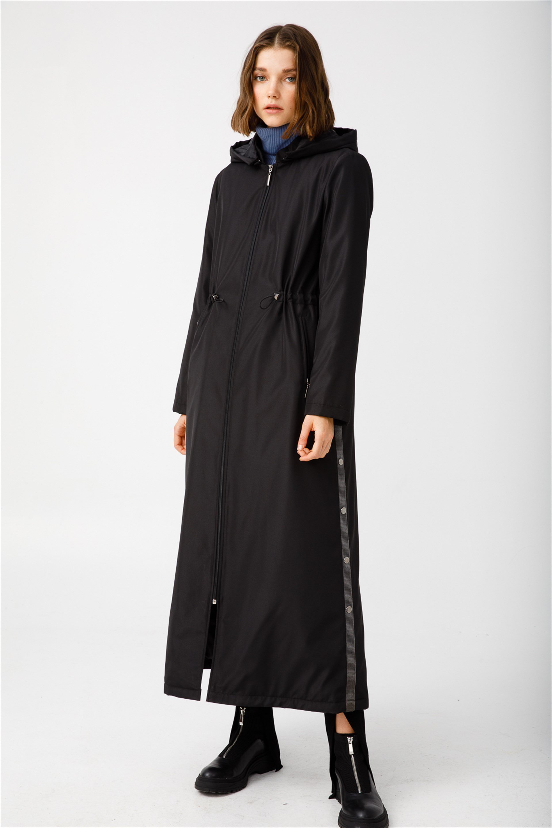 İç Astarı Peluş ve Dolgulu Elyaf Yanları Spor Çizgili Spor Manto-Siyah (212524M KABAN-01)