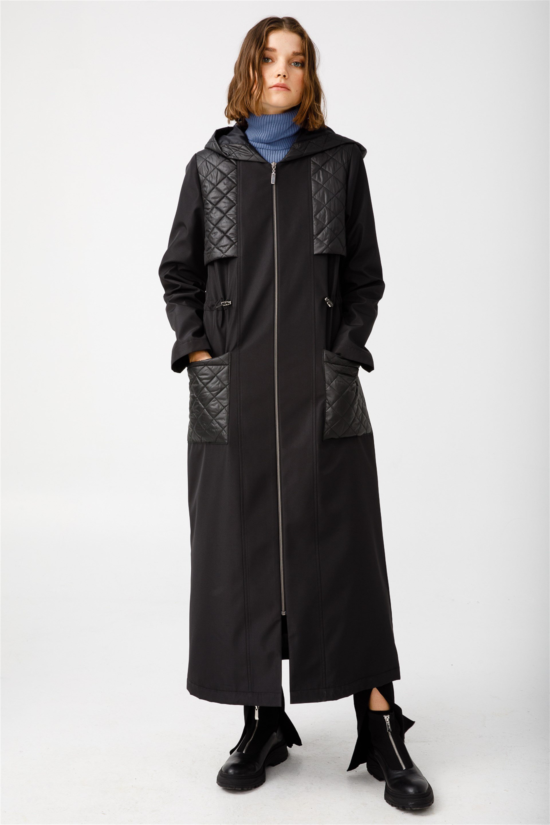 İç Astarı Peluş ve Dolgulu Tam Boy Kapitone Detaylı Manto-Siyah (212805M KABAN-01)