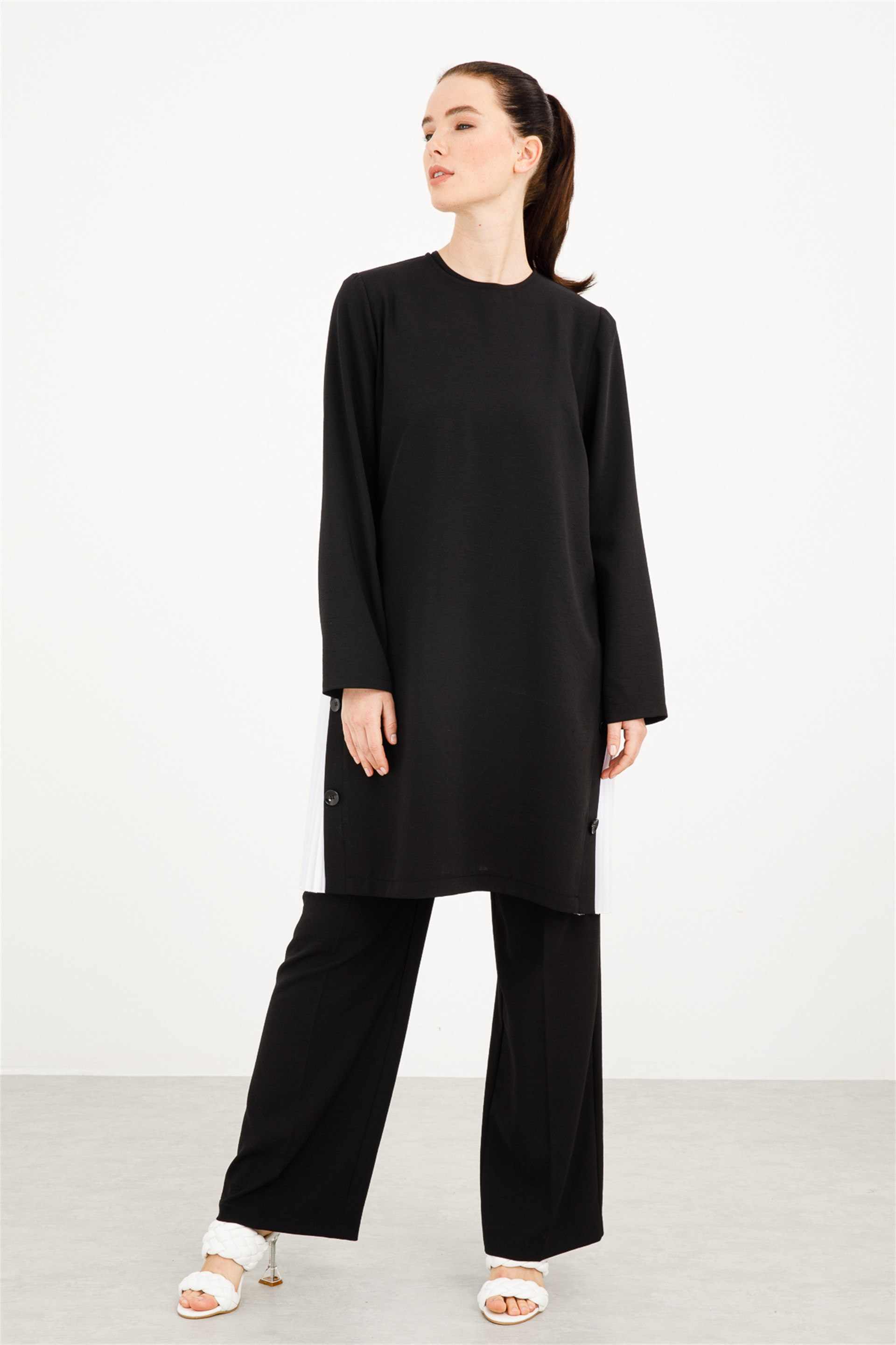 İki Yanı Beyaz Pilise Garnili Spor Kap-Siyah (211418M TUNİK-01)