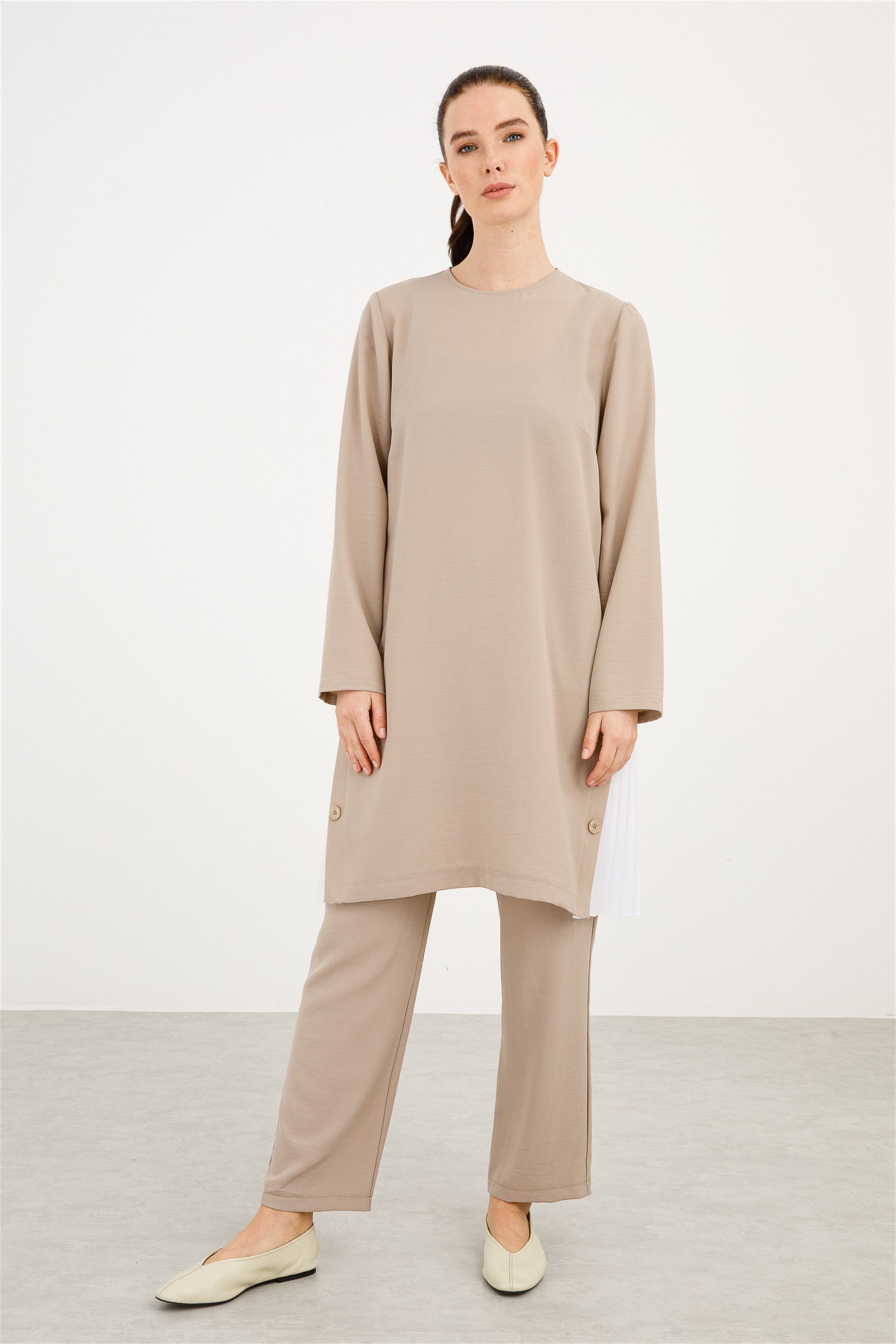 İki Yanı Beyaz Pilise Garnili Spor Kap-Taş (211418M TUNİK-12)