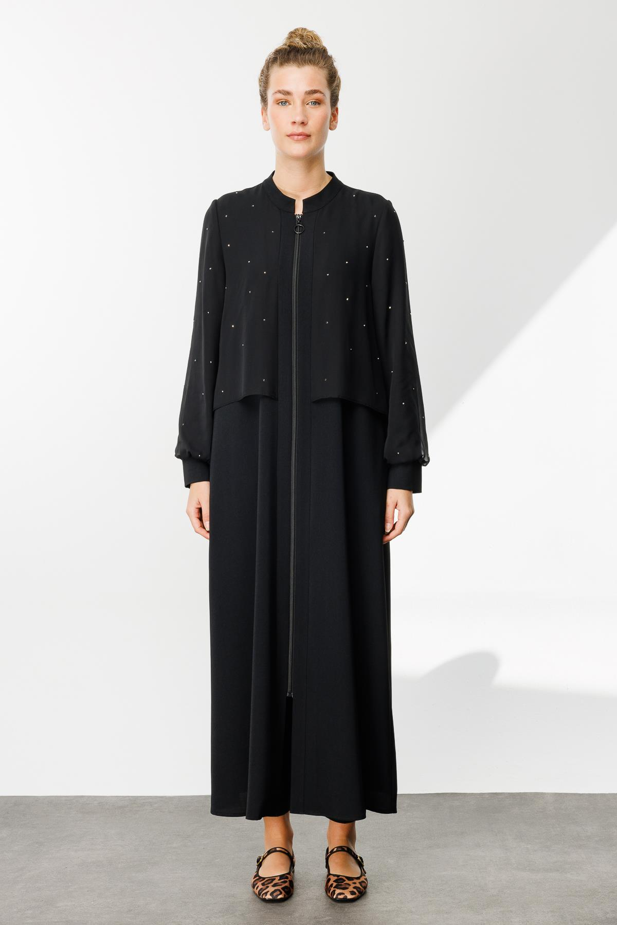 Işıltı Taş ve Şifon Detaylı Özel Dokuma Kumaş Ferace Kap