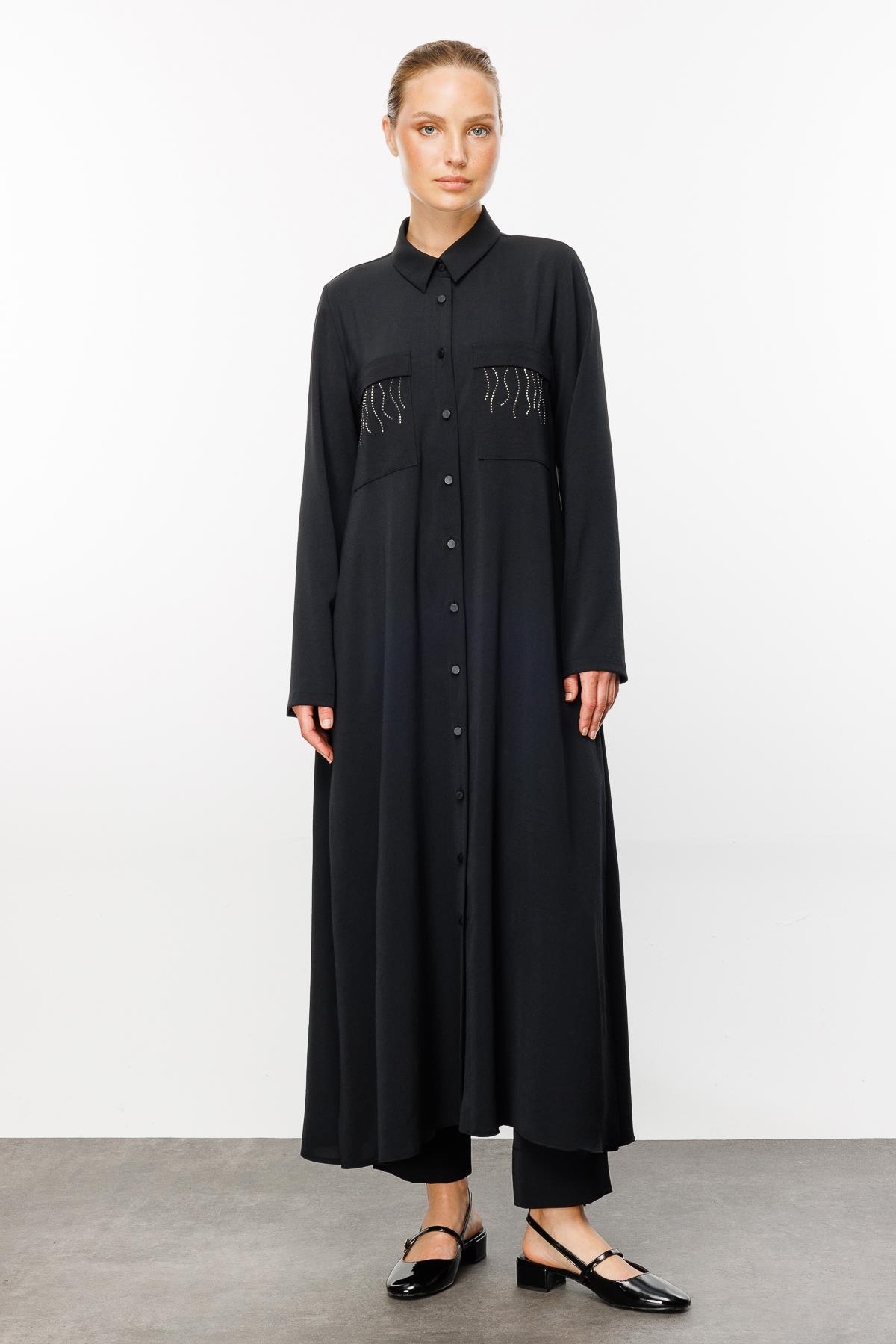 İşleme ve Aller Detaylı Özel Dokuma Zamansız Kap-Siyah