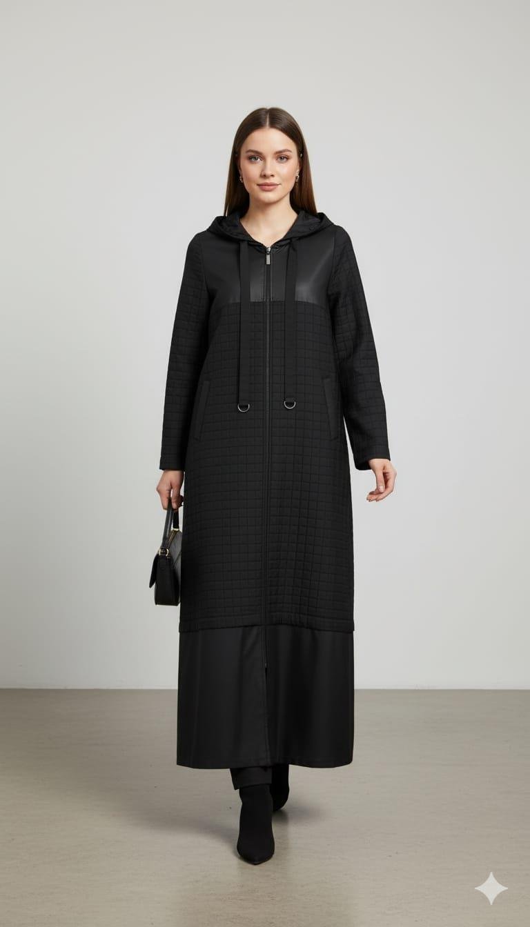 Jakar Kapitone ve Cupra Plys Mix Astarlı Spor Mevsimlik Trench Kap-Siyah (252560M KAP-01)