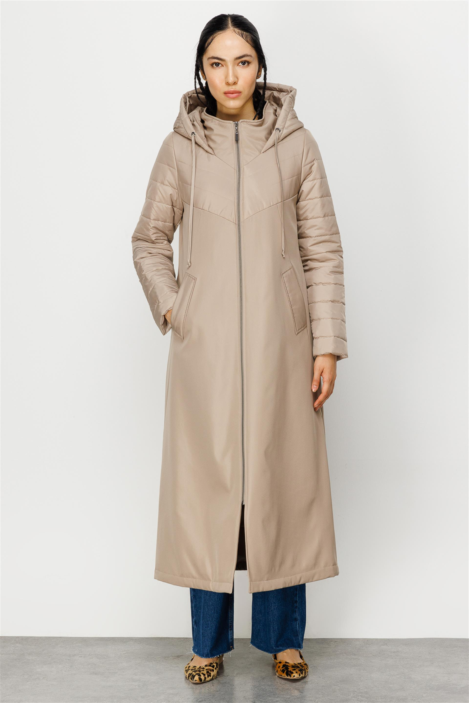 Kapitone Garnili Tüm Beden Dolgulu Spor Manto Kaban-Taş (232559M KABAN-12)