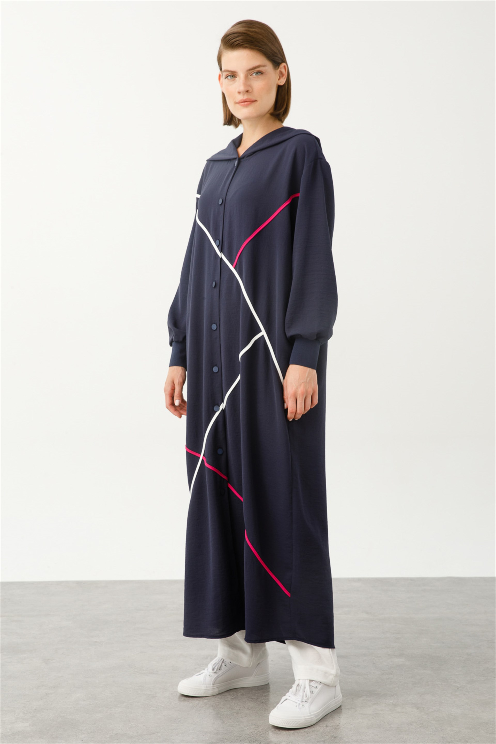 Kapüşonlu Çizgi Desenli Kap Üretim Ülkesi: Türkiye Sezon: 2022 İlkbahar Yaz Kumaş İçeriği: %100 Polyester Boy Uzunluğu: 135 cm Ürün Ölçüleri 38/40 Beden için: Göğüs 123 cm, Basen 124 cm Bedenler arası 5 cm fark etmektedir. Manken Ölçüleri Giydiği Beden: 36 Boy: 175 cm Göğüs: 75 cm , Bel: 60 cm , Basen: 88 cm