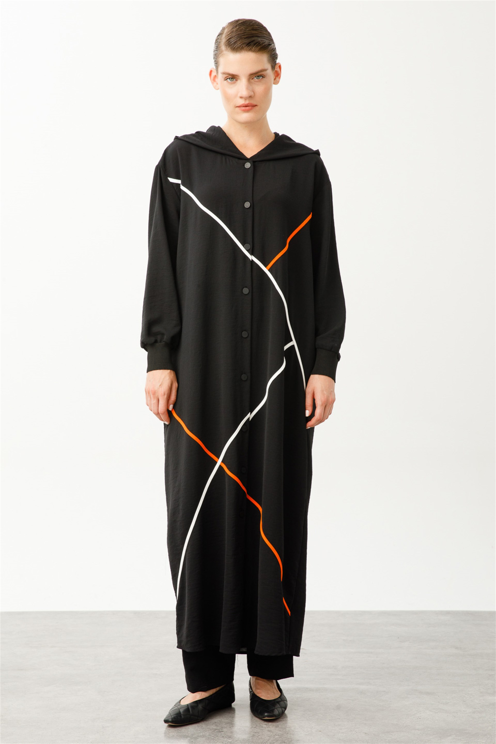 Kapüşonlu Çizgi Desenli Kap-Siyah (221561M PARDESÜ-01)