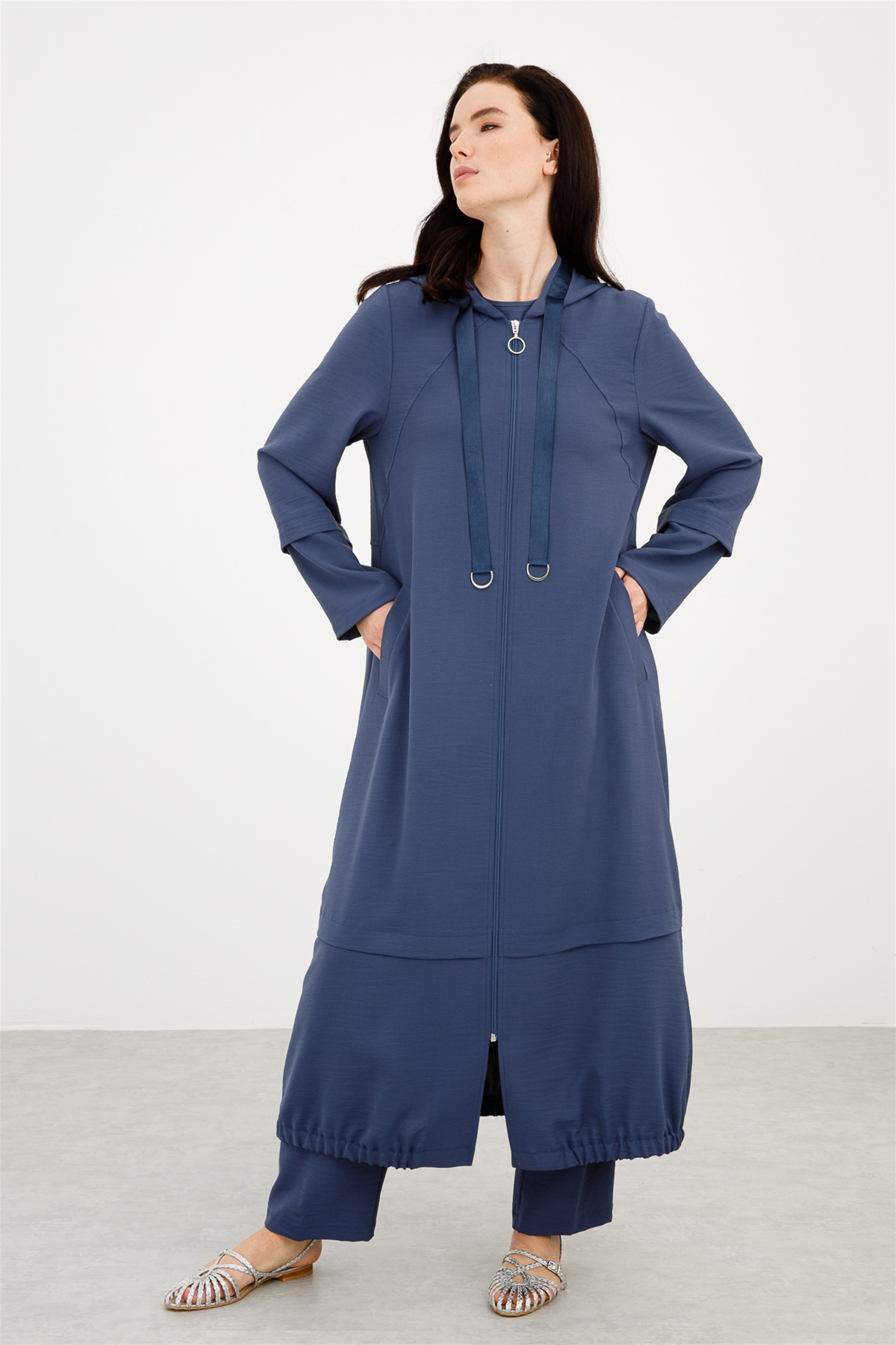 Kapüşonlu Grogren Garnili Spor Kap-İndigo (211874M PARDESÜ-44)