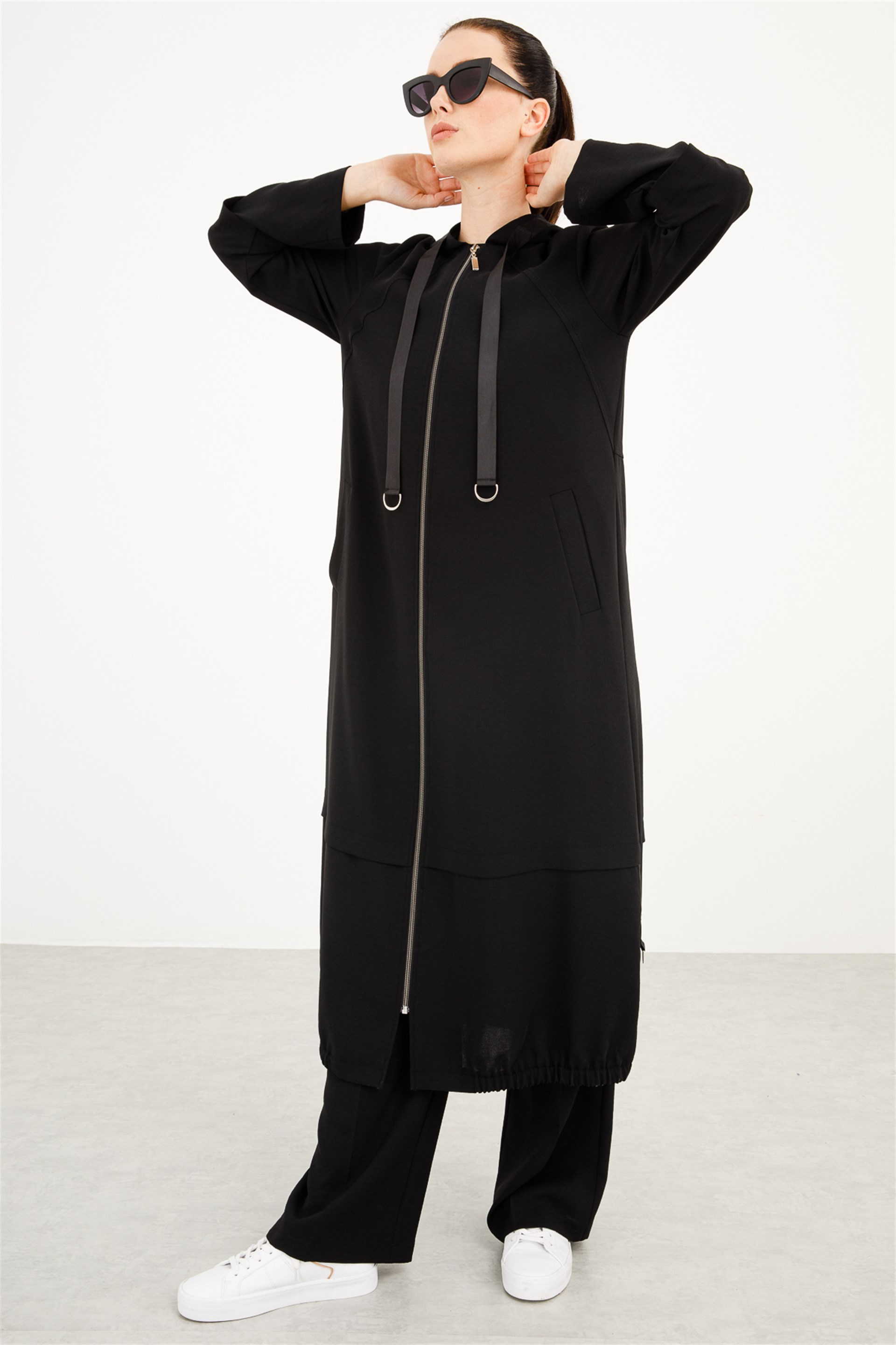 Kapüşonlu Grogren Garnili Spor Kap-Siyah (211874M PARDESÜ-01)