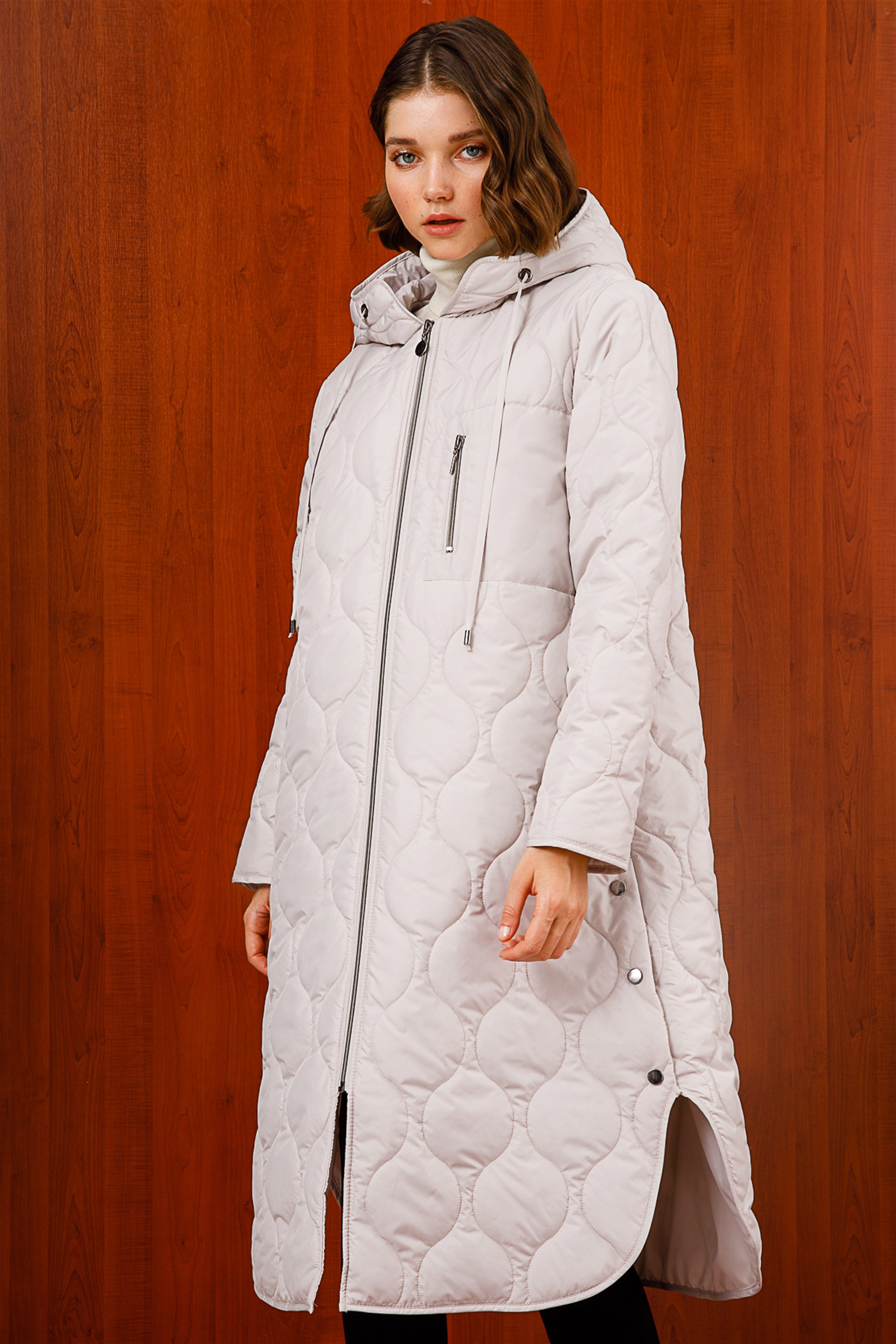 Kapüşonlu Yanları Çıt Çıt Aksesuarlı Kapitone Spor Manto-Gümüş (212504M KABAN-79)