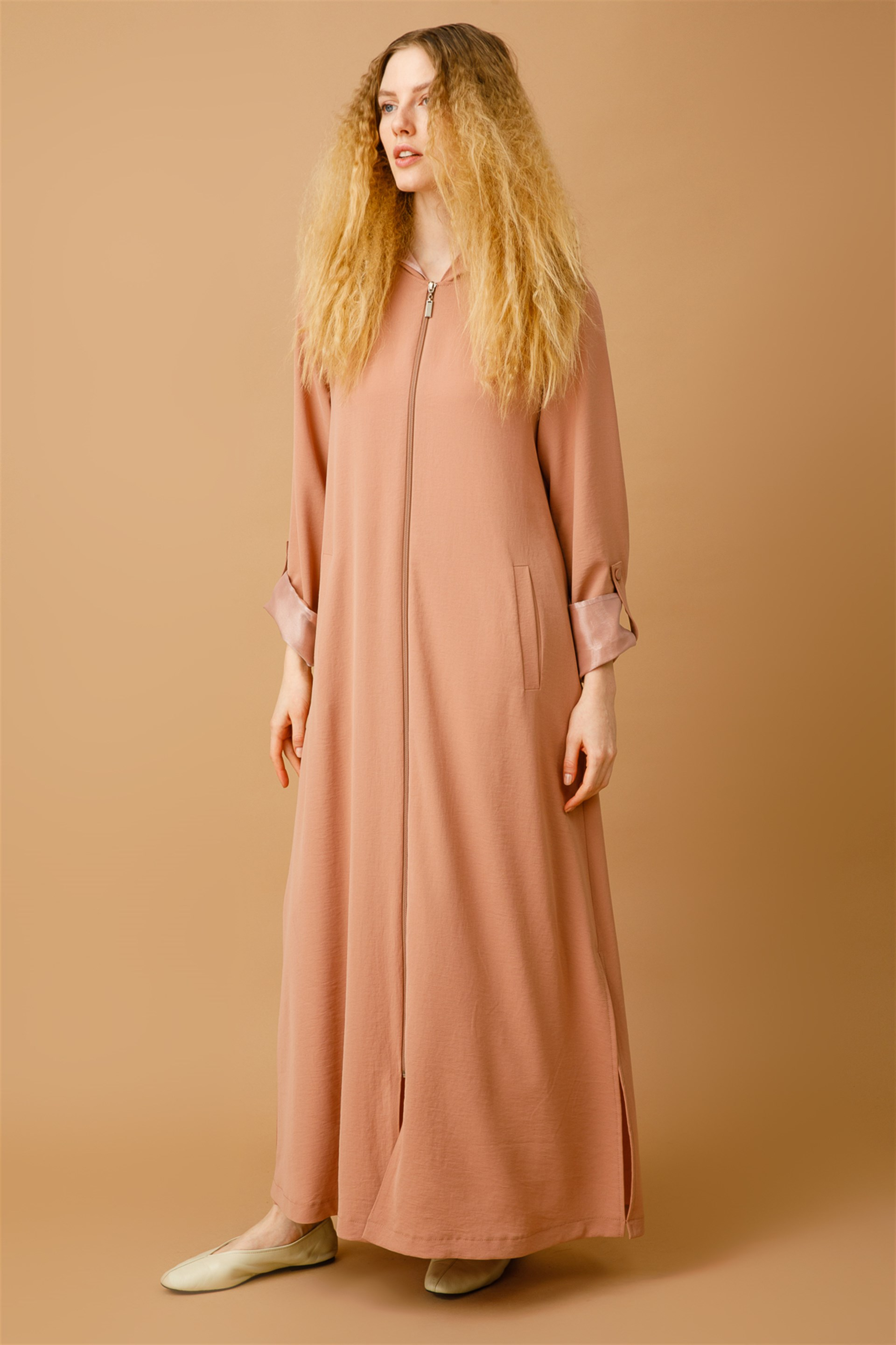 Kapüşonu ve Kolları Uçları Organze Kaplı Spor Tam Boy Kap-Pudra (221599M KAP-10)