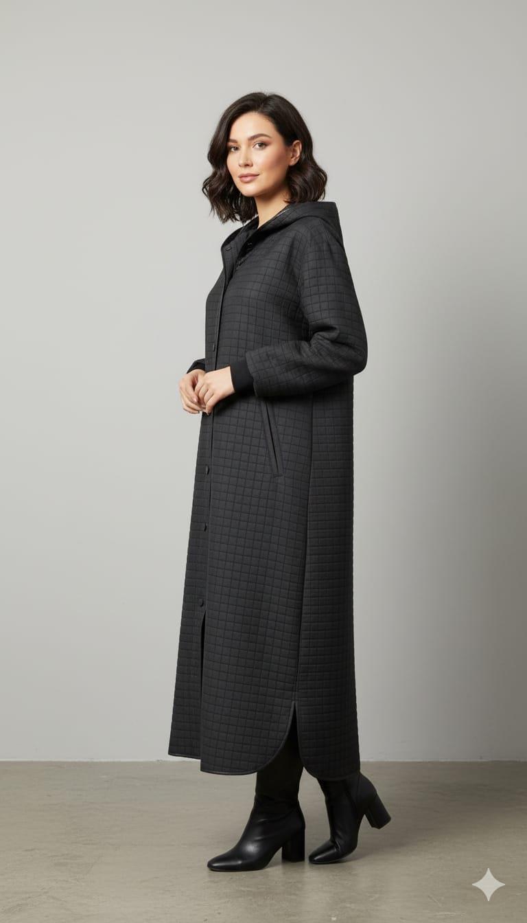 Kare Jakar Kapitone Astar ile Mevsimlik Spor Zamansız Trench Kap