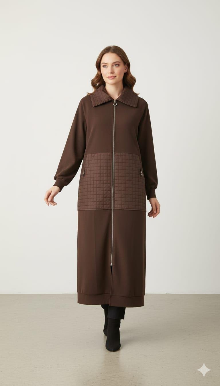Kare Jakar Kapitone ve Krep Doku Mix Astarlı Mevsimlik Spor Trench Kap-Kahve (252536M KAP-02)