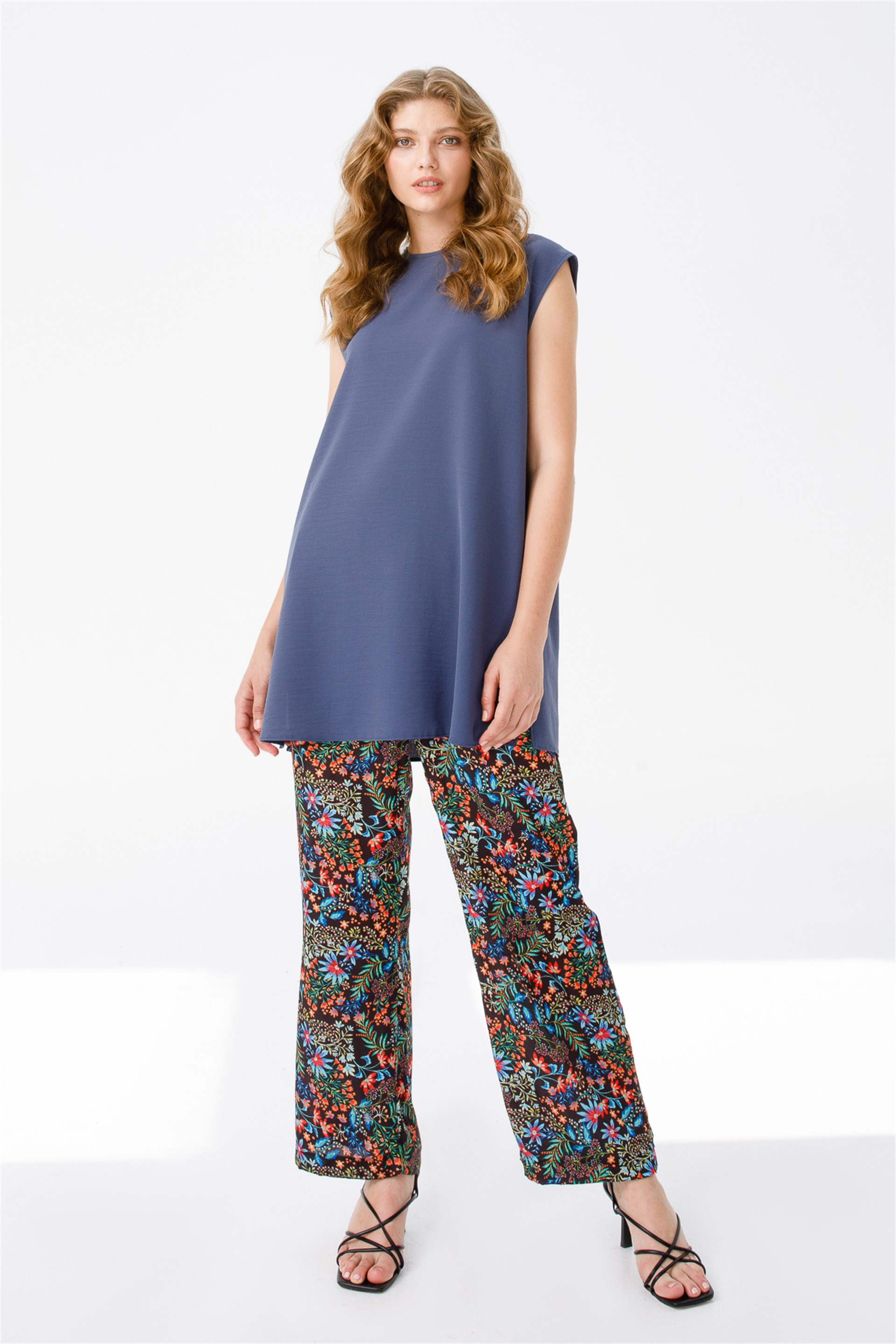 Karışık Renkli Doğal Elyaf Pantolon-Desenli
