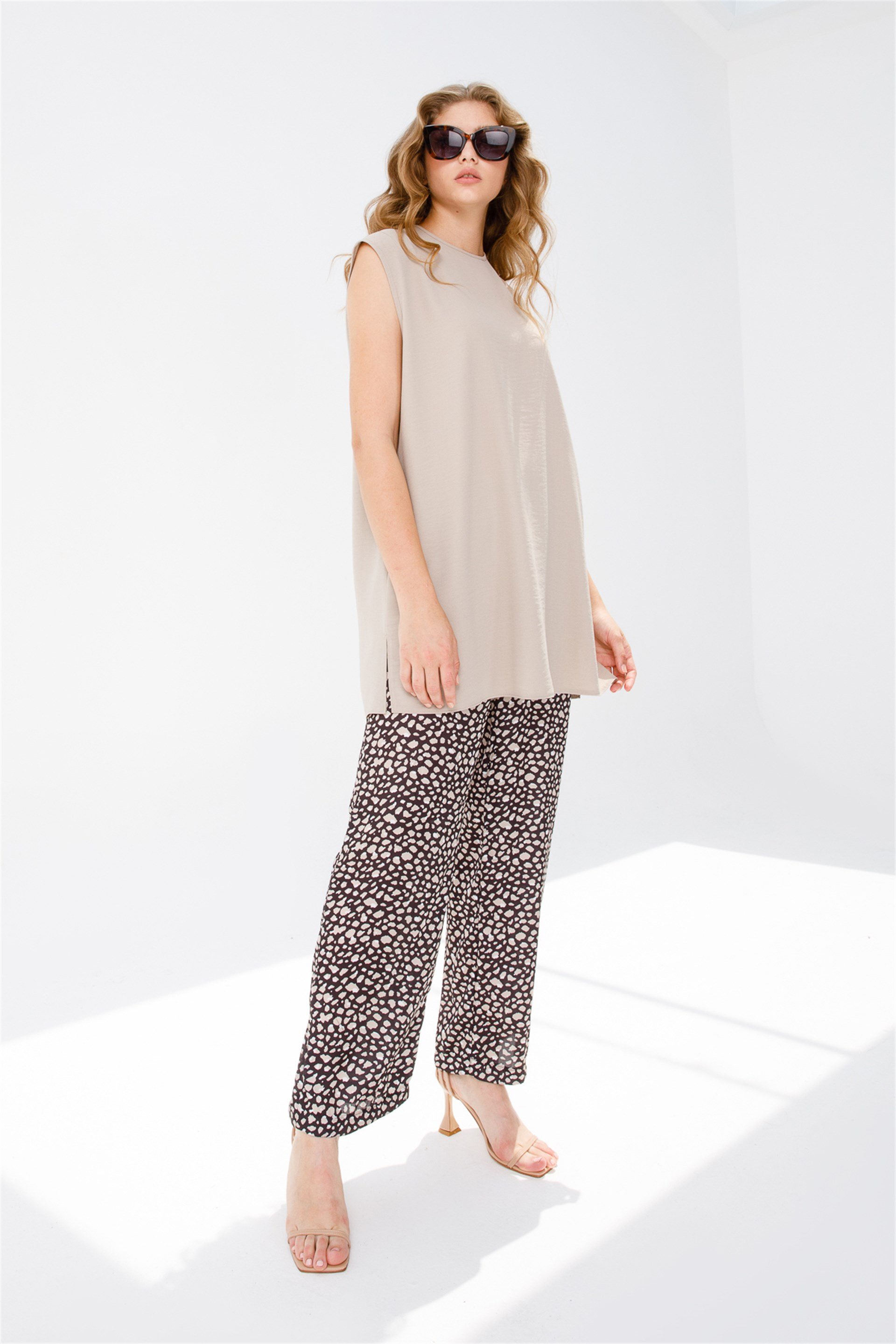 Karışık Renkli Doğal Elyaf Pantolon-LEOPAR