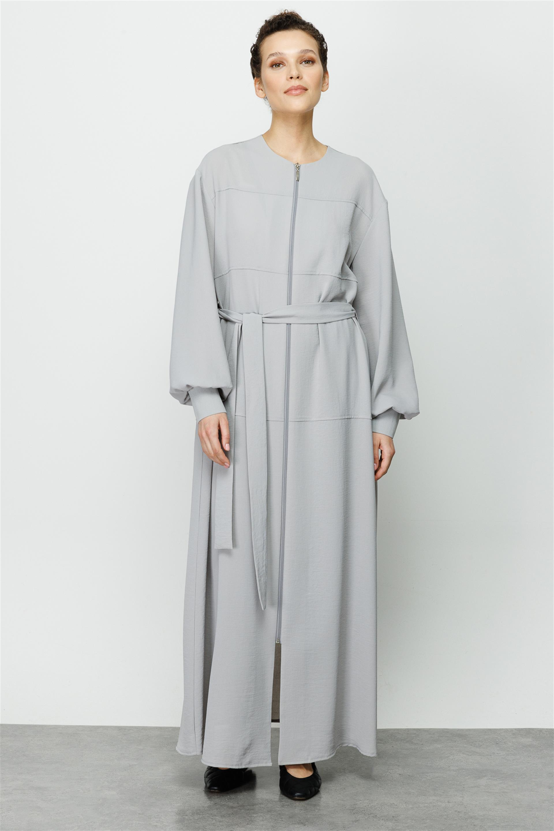 Kat Kat Parça Detaylı Kol Ucu Ribanalı Sade Spor Kap-Gri