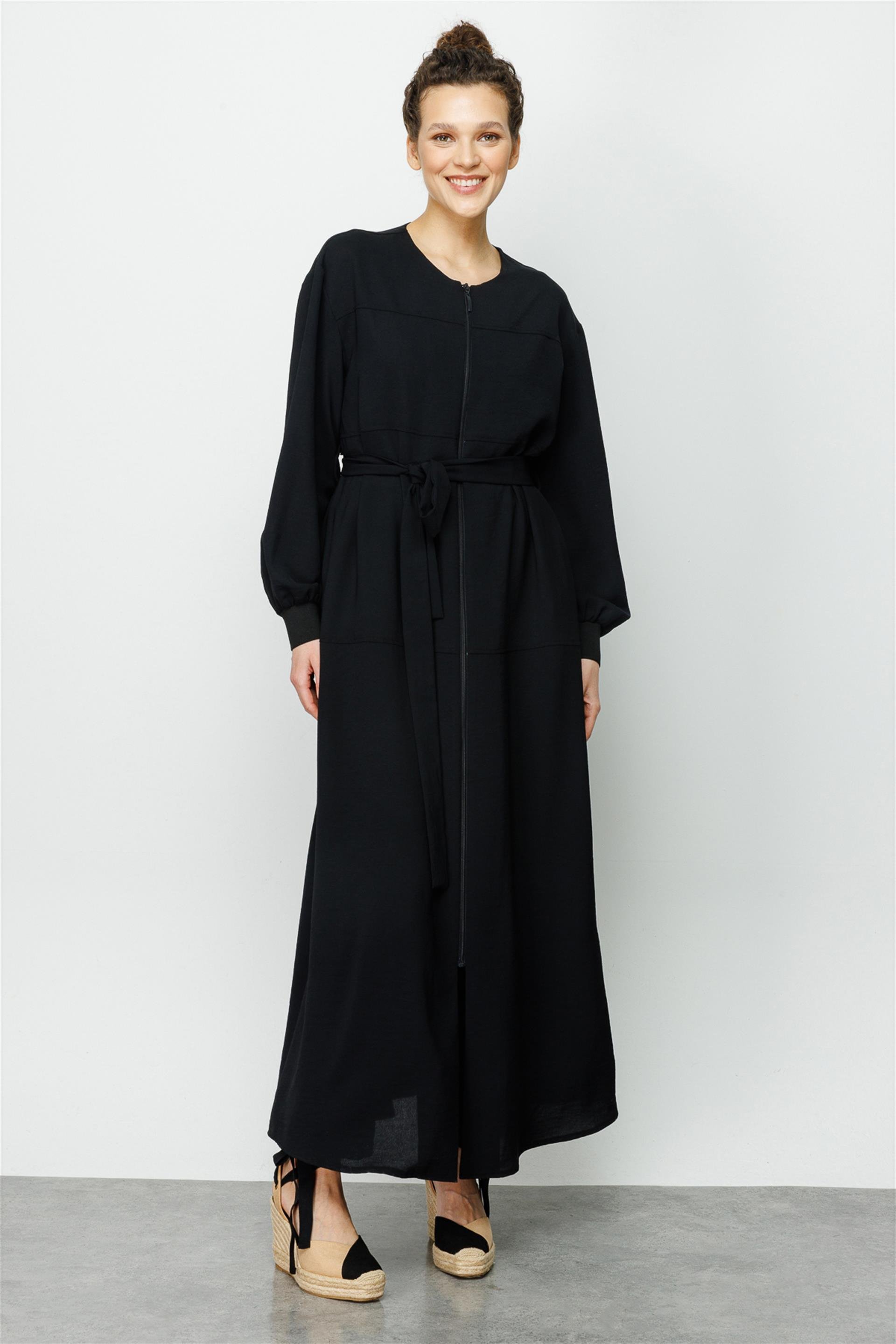 Kat Kat Parça Detaylı Kol Ucu Ribanalı Sade Spor Kap-Siyah