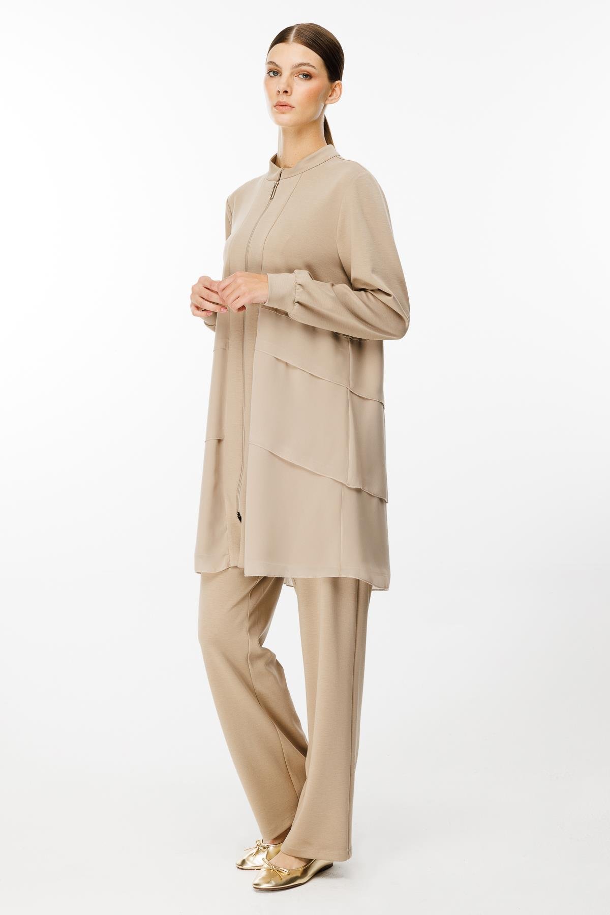 Kat Kat Şifon Örme Üst ve Pantalon Kombinli Takım-Taş (242843M PANTOLONLU KOMBİN-12)
