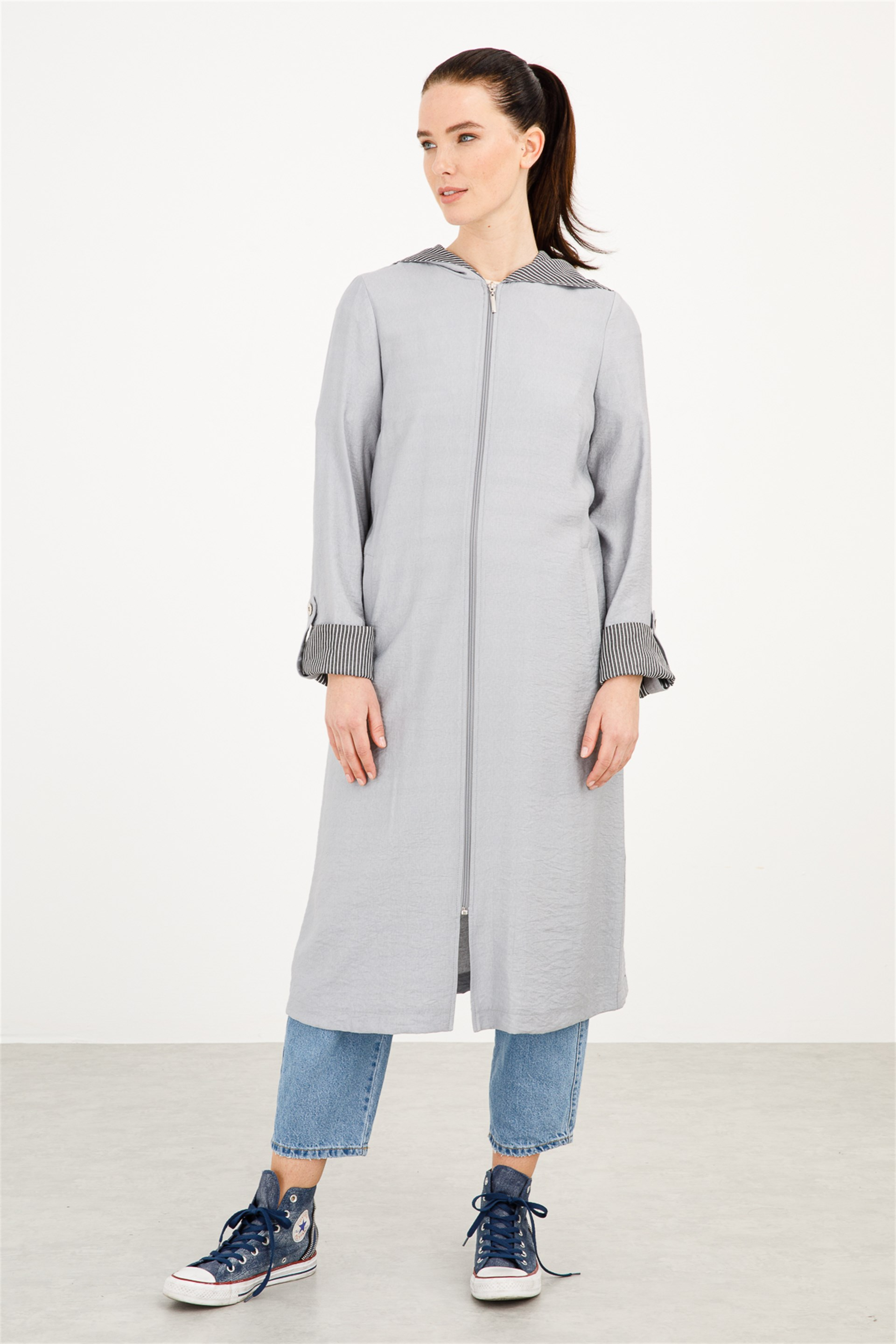 Klasik, vazgeçilmez ve zamansız spor kap. Pamuk çizgili kumaştan kapşonlu önü fermuarlı, astarsız spor kap.Sizi gündelik hayatınızda hafif ve rahat hissetmeniz sağlayacak şekilde tasarlanmış zor kırışan ve nefes alan kumaştan spor kap. Spor boy (110 cm). * Beden seçimi yapmadan önce lütfen bedenler üzerinde yer alan renk kutucuklarına tıklamayı unutmayınız! Üretim Ülkesi: Türkiye Sezon: 2021 İlkbahar Yaz Kumaş İçeriği: %100 Polyester Boy Uzunluğu: 110 cm (Arka Orta Boy) Manken Ölçüleri Giydiği Beden: 38 Boy: 176 cm Göğüs: 88 cm , Bel: 66 cm , Basen: 99 cm
