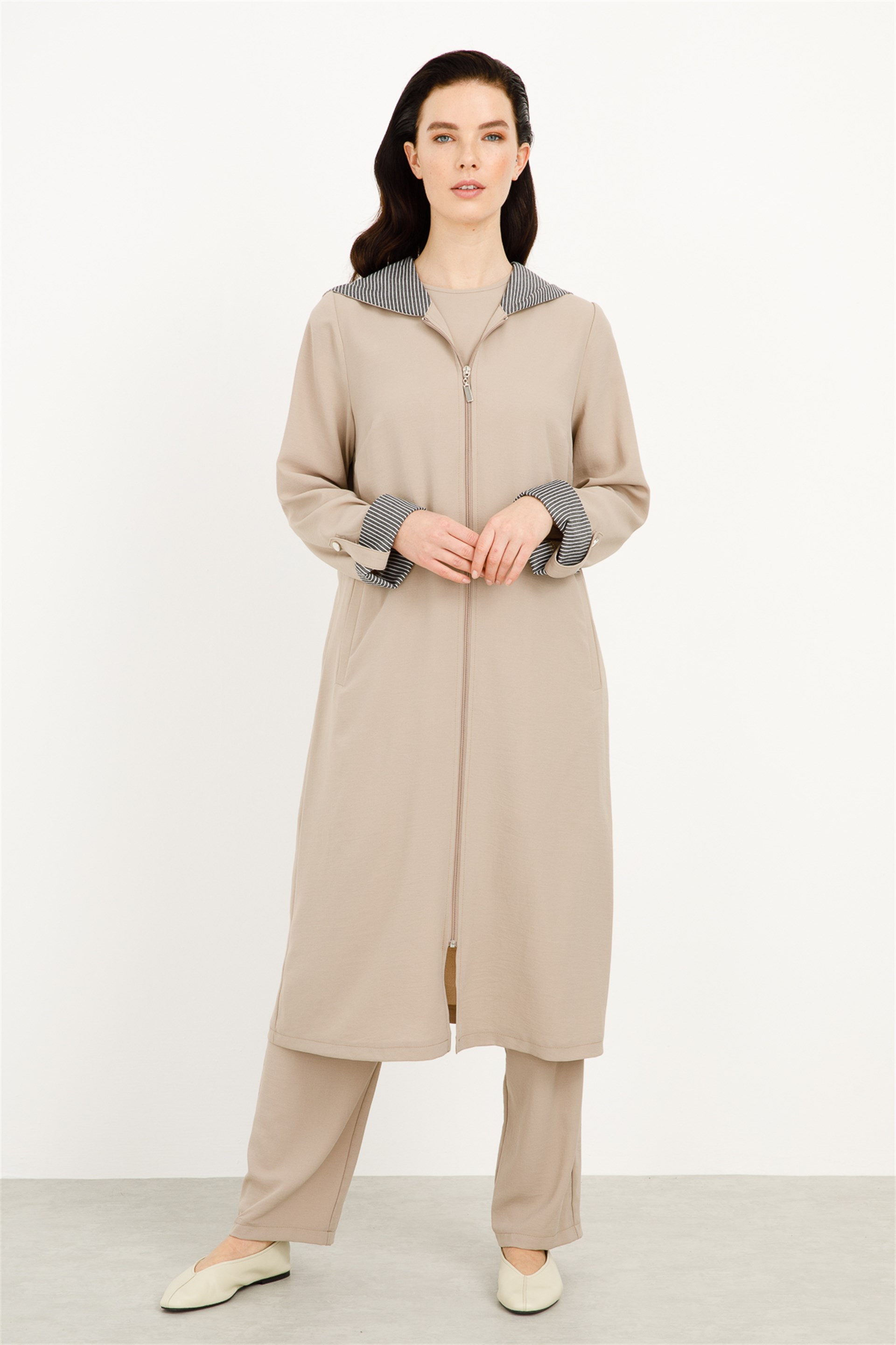 Klasik, vazgeçilmez ve zamansız spor kap. Pamuk çizgili kumaştan kapşonlu önü fermuarlı, astarsız spor kap.Sizi gündelik hayatınızda hafif ve rahat hissetmeniz sağlayacak şekilde tasarlanmış zor kırışan ve nefes alan kumaştan spor kap. Spor boy (110 cm). * Beden seçimi yapmadan önce lütfen bedenler üzerinde yer alan renk kutucuklarına tıklamayı unutmayınız! Üretim Ülkesi: Türkiye Sezon: 2021 İlkbahar Yaz Kumaş İçeriği: %100 Polyester Boy Uzunluğu: 110 cm (Arka Orta Boy) Manken Ölçüleri Giydiği Beden: 38 Boy: 176 cm Göğüs: 88 cm , Bel: 66 cm , Basen: 99 cm