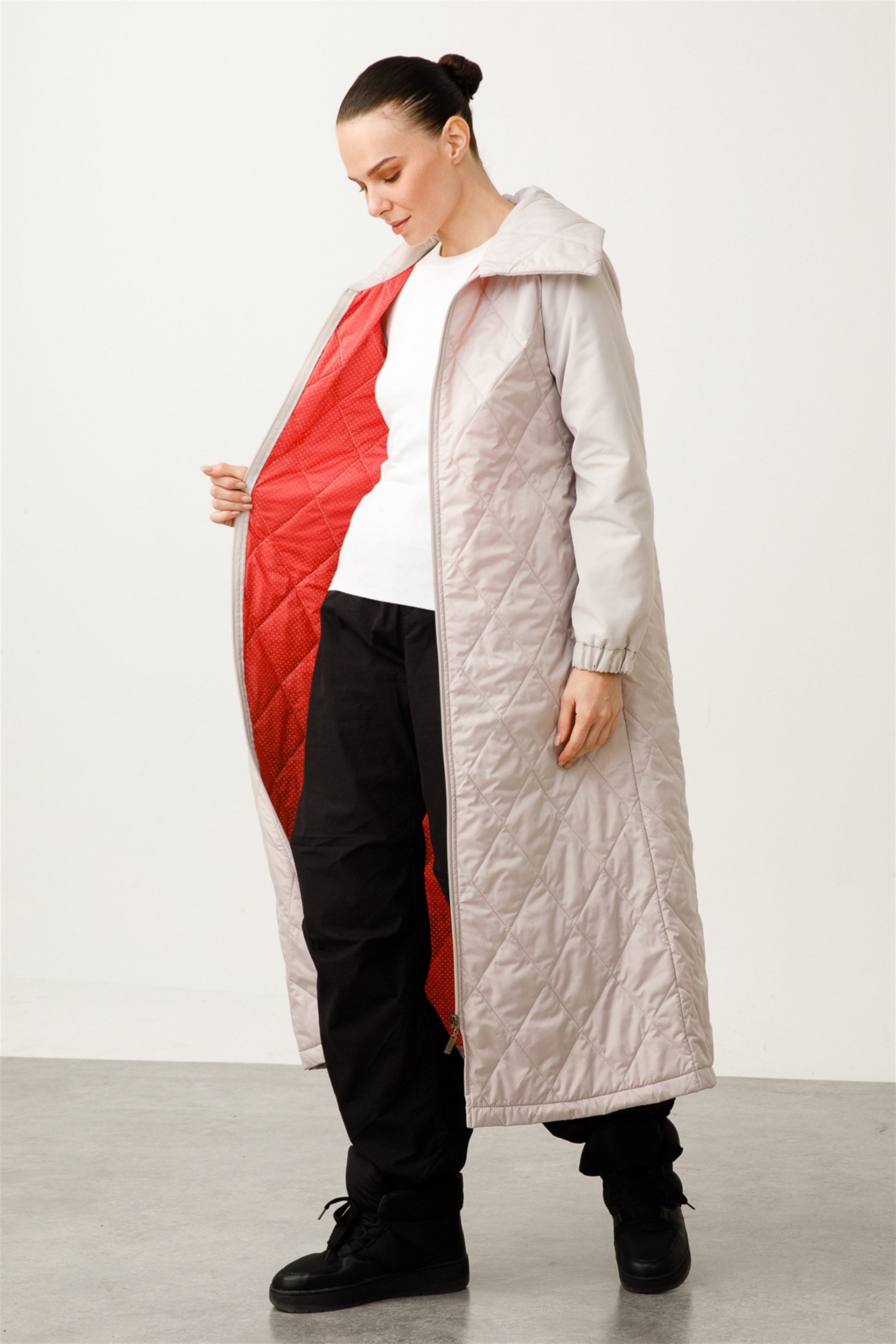 Kolları Helene Garni Detaylı Kapitone Manto-Gümüş (222505M KABAN-79)