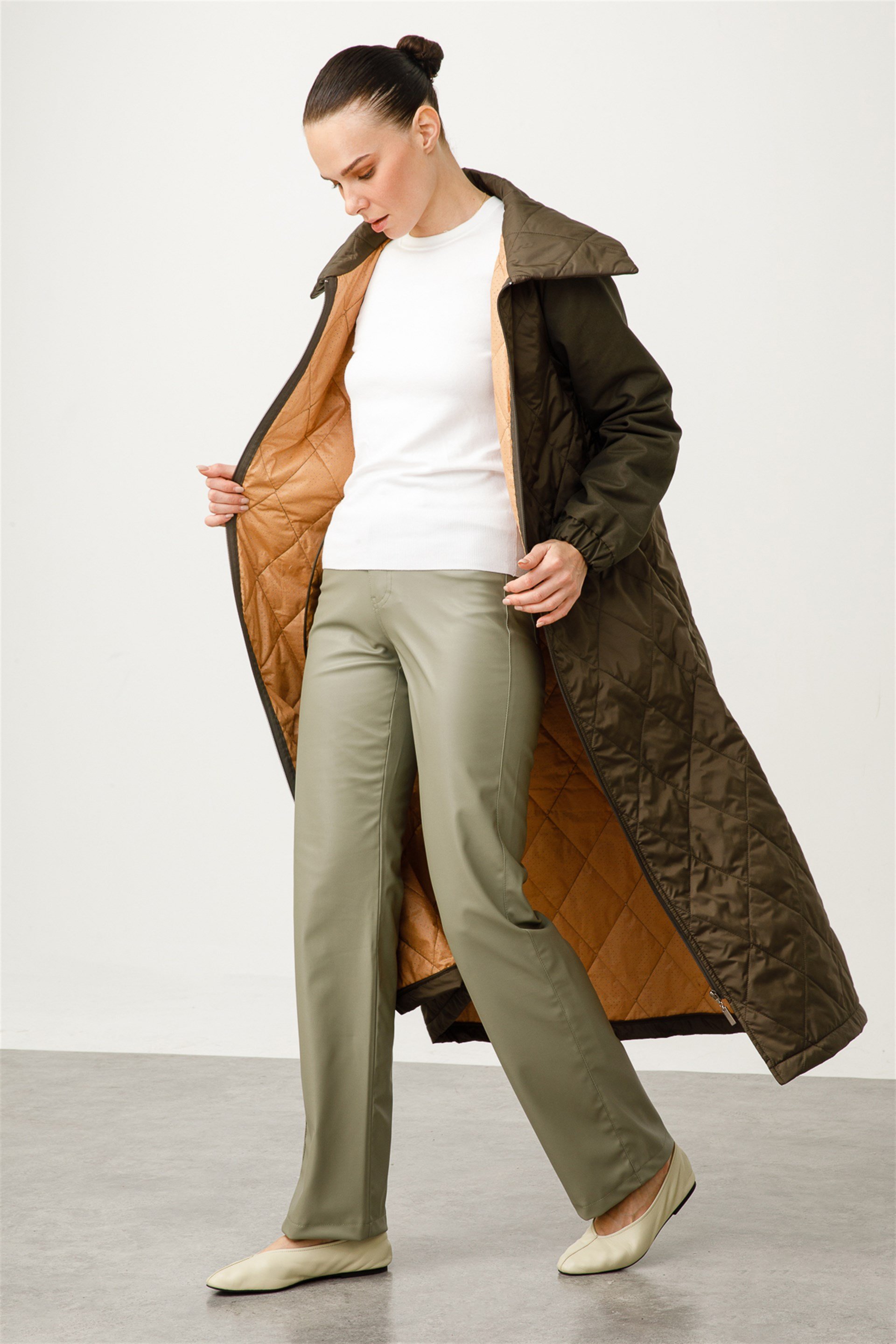 Kol Altı ve Kol Uçları Helene Garni Detaylı Kapitone Manto-Haki