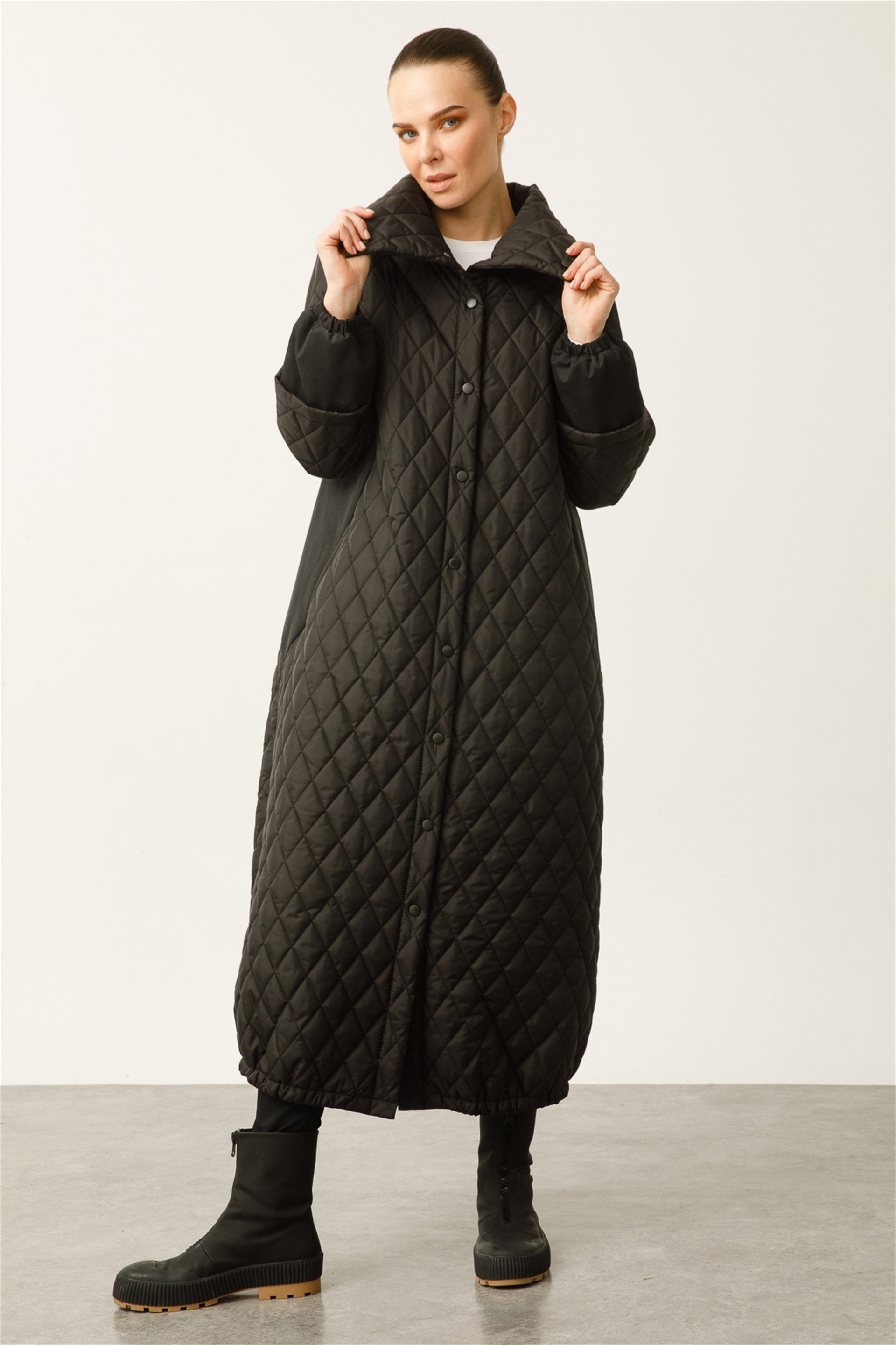 Kol Altı ve Kol Uçları Helene Garni Detaylı Kapitone Manto-Siyah (222533M KABAN-01)